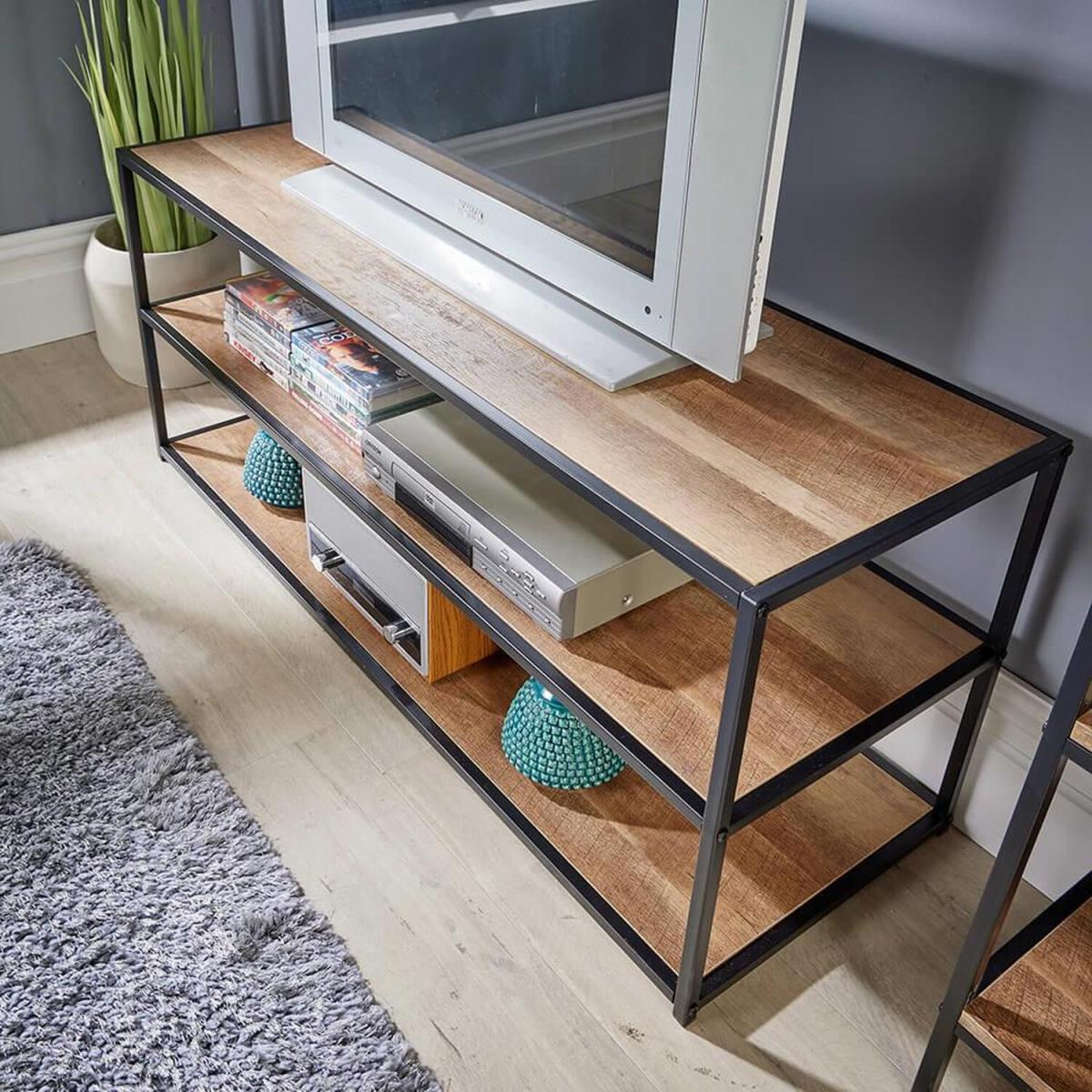 Oakmere Industrial TV Stand Media Storage Unit - Natural - Natural