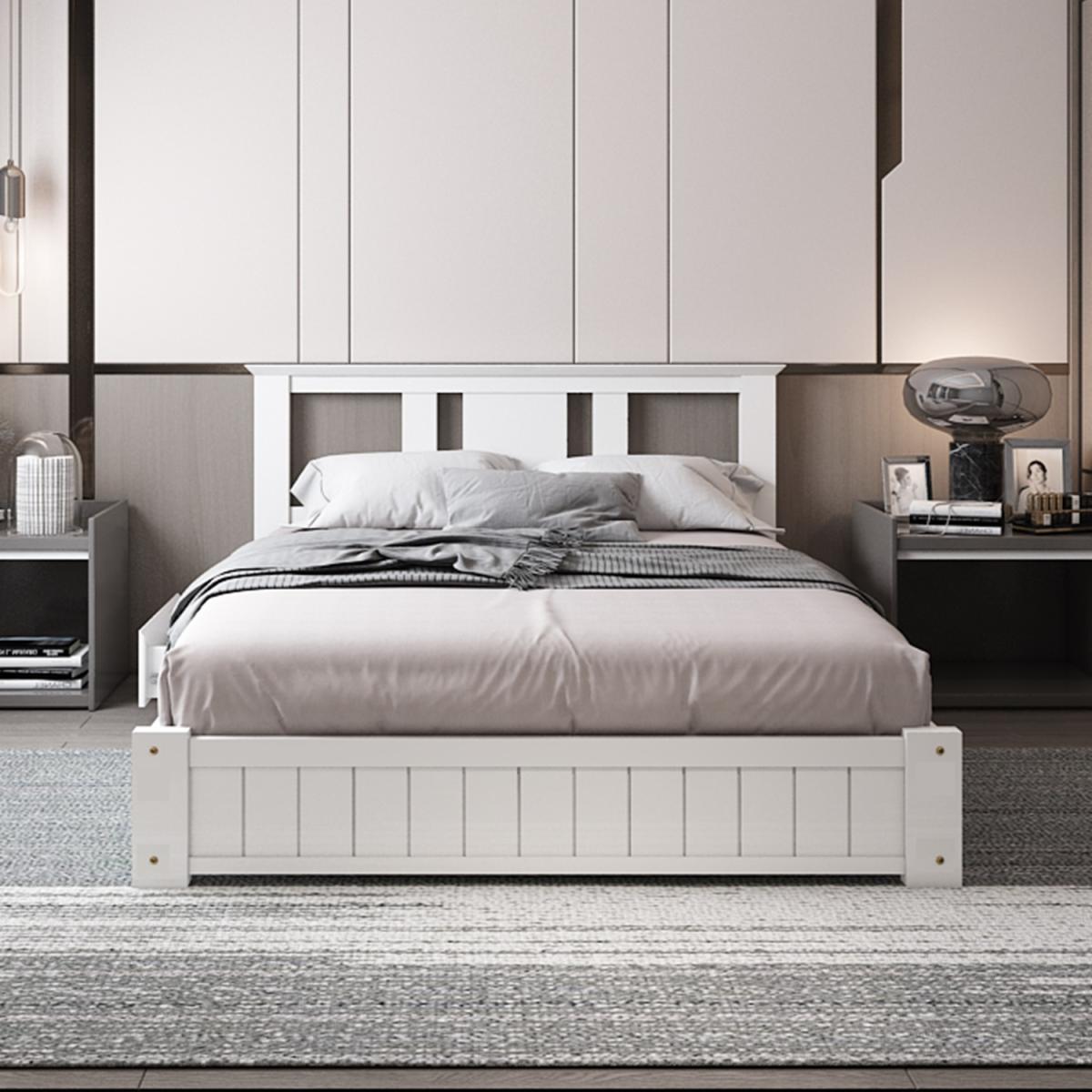 Oakmere Solid Wood Bed Frame with 3 Drawers Headboard - White / Single