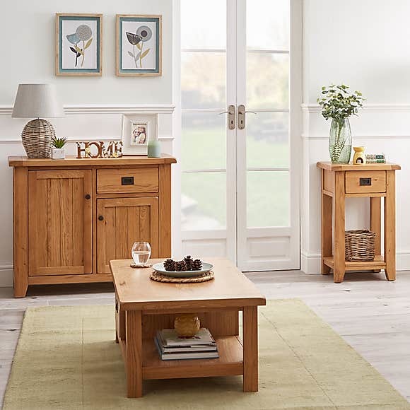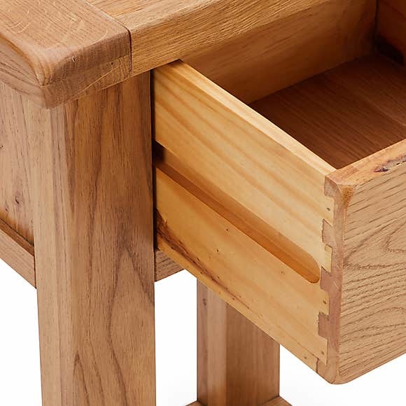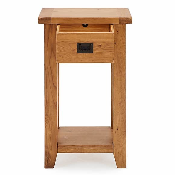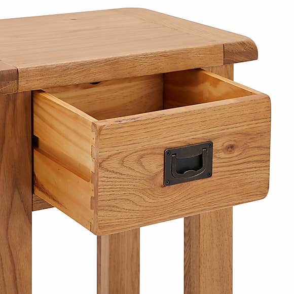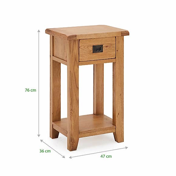 Dunelm Exclusive - Designed and Developed by Dunelm Crafted from solid oak and oak veneer, the timeless Oakville range is built to last and is perfect for busy households. Complete with a waxed finish to enhance and showcase its natural grain, this traditional furniture range features smooth, rounded corners and stunning antique style handles. Offering plenty of handy storage space, the fully assembled tall Oakville side table features a single drawer and a spacious open shelf. [Click here to view the full Oakville range](https://www.dunelm.com/category/home-and-furniture/furniture/shop-by-collection/oakville-furniture-collection)