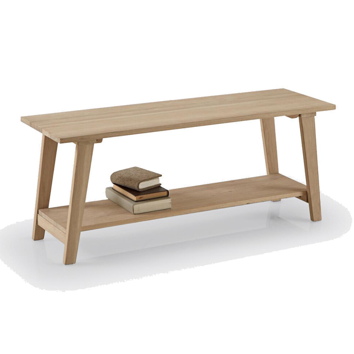 Oaky hallway bench. Its narrow depth (35cm) allows it to be placed anywhere!Product Details • 2 shelves for neatly storing bags and other accessories • Bleached oak • FSC® certified wood. Dimensions • Length 110 x height 45 x depth 35cmDelivery:. Assembly required. Available for home delivery. Note! Please check that all access points are large enough to accommodate your delivery (doors, stairs, lifts). • WOOD FROM SUSTAINABLY MANAGED FORESTS. FSC® certified wood comes from forests that are environmentally, socially and economically well managed.
