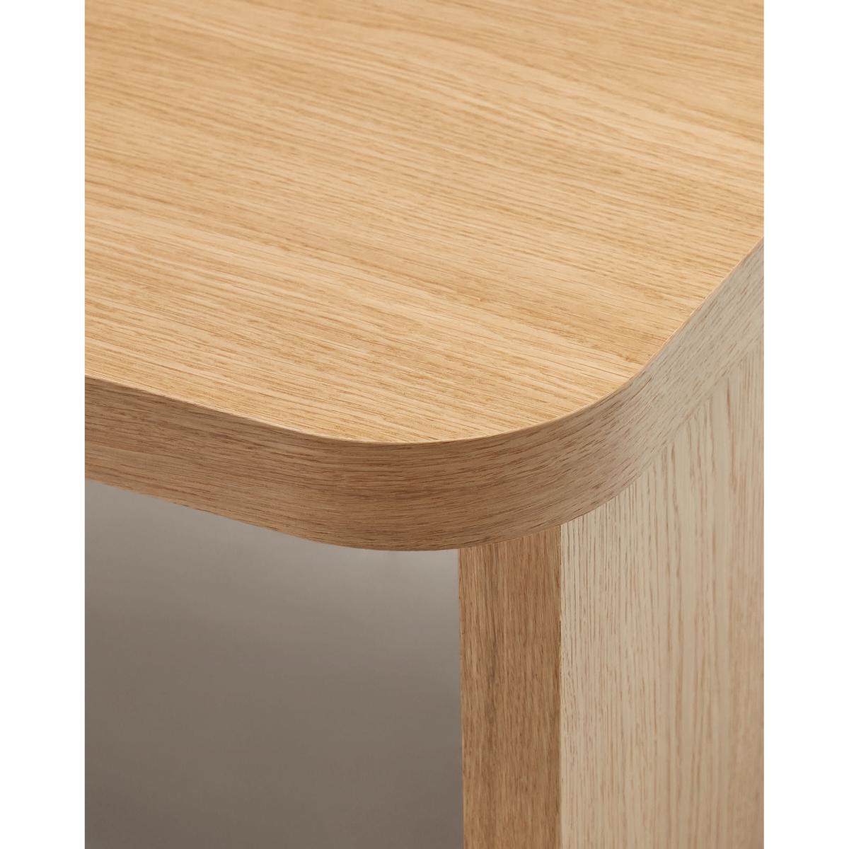 The Kave Home team have designed the Oaq collection, the true star of your living room: its design in oak wood veneer combines with curving and straight lines, transmitting movement and fluidity.