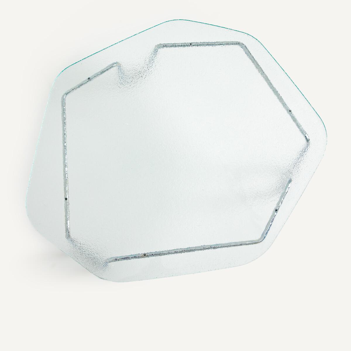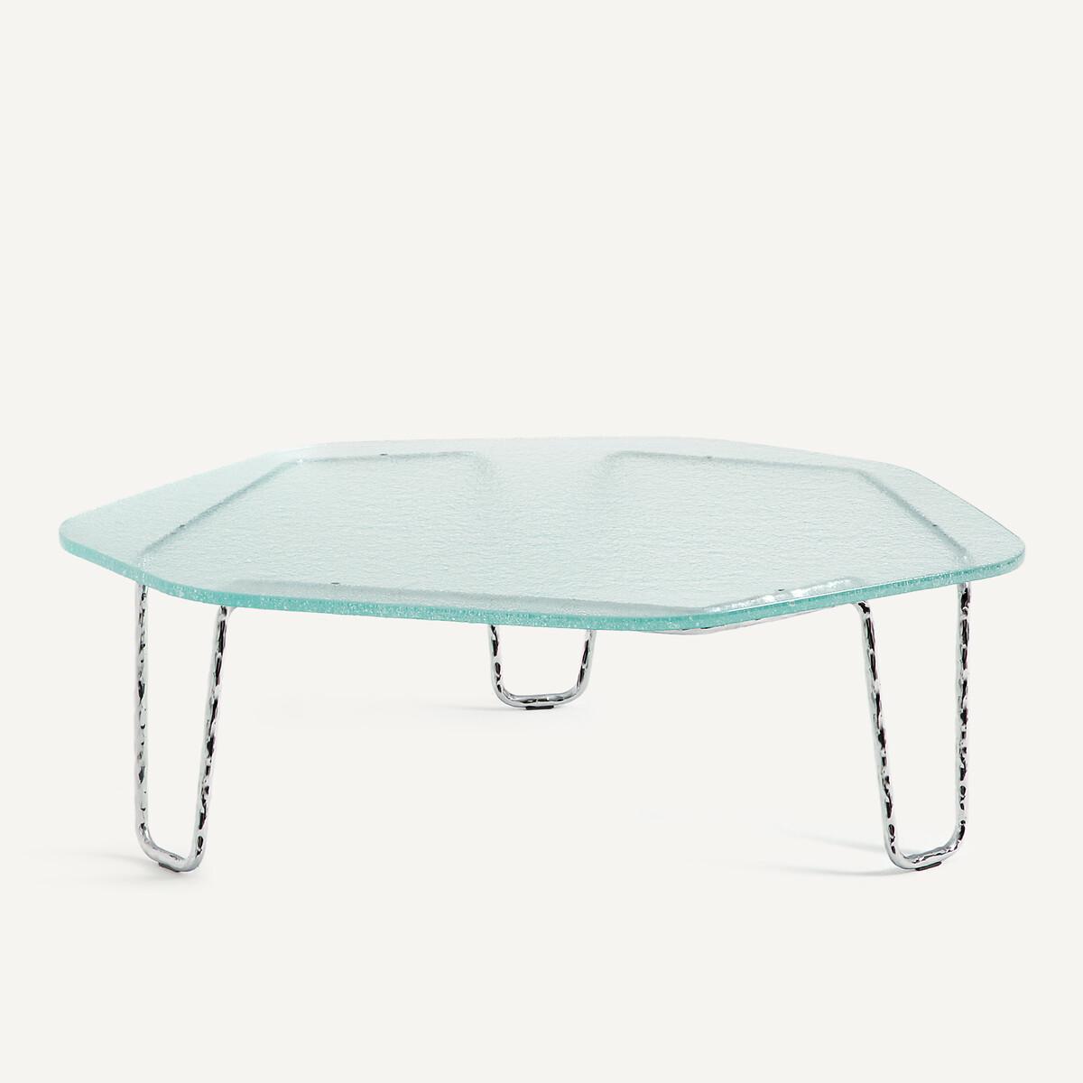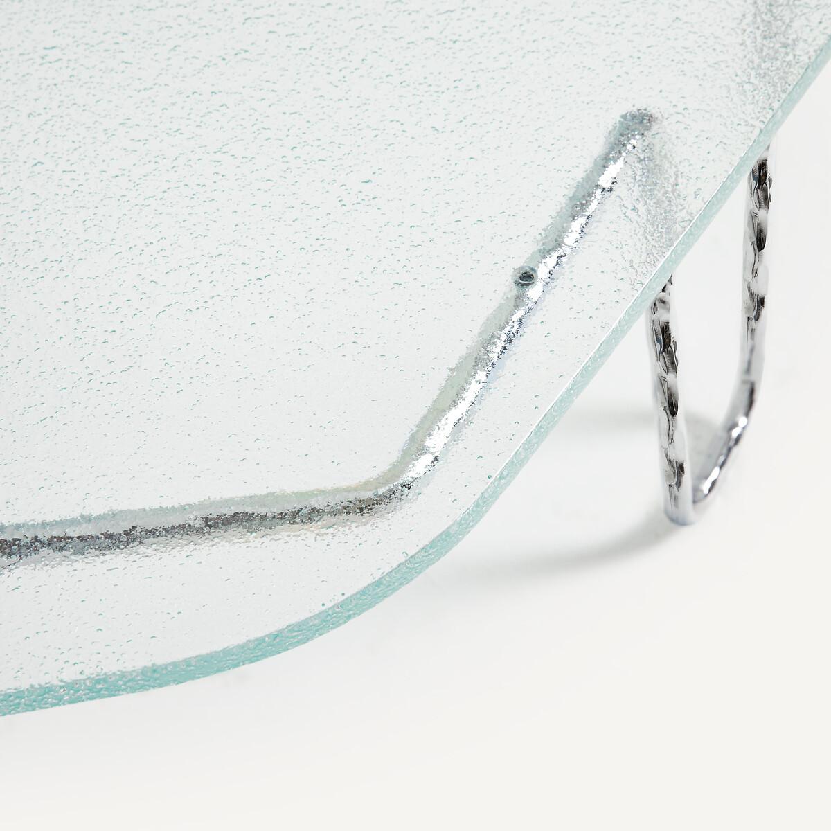 Imagine a miniature archipelago, where each island takes the form of a modular coffee table. The irregularly contoured glass table tops rest on a chrome-plated metal frame, capturing the light and evoking the sparkling reflections of the water. The Oasis collection invites you on an aquatic escapade, a soothing plunge into a world inspired by the sea. The Oasis coffee table is part of the "Nomad Escape" collection designed by Otto, an agency founded by architect and designer Paola Navone. Led by Cristina Pettenuzzo and Domenico Diego, this collection has a bold and unique identity, transforming the home into an bright and positive oasis of well-being for all seasons. Product Details • Tempered glass table top with rounded edges, 1.5cm thick: smooth top, granite underside • Tubular legs and frame in hand-hammered iron with chrome finish. Each piece is unique • Silicone pads to be placed between the table top and frame. Dimensions • Width: 89cm • Height: 33cm • Depth: 82.5cm • Requires some assembly (based to be attached). Dimensions and weight of parcel2 parcels • L84 x H35 x D74.5cm. 4.8kg • L100 x H8 x D93cm. 22.7kg
