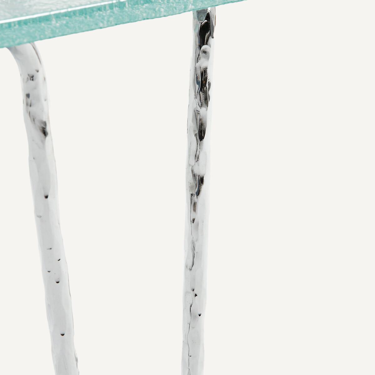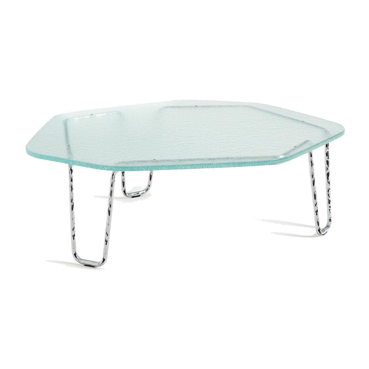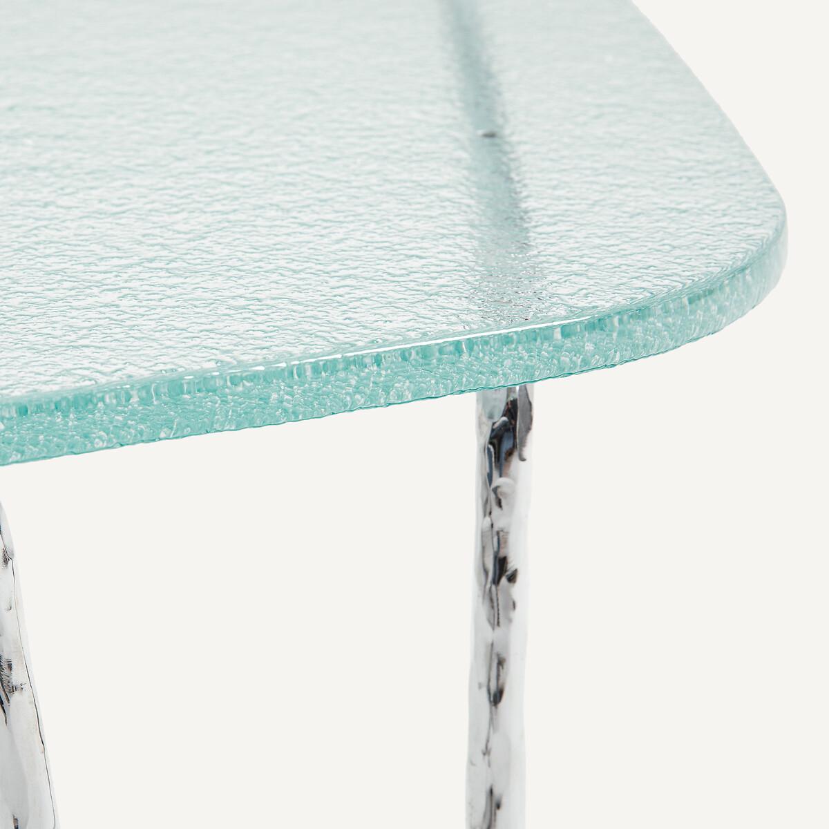 Imagine a miniature archipelago, where each island takes the form of a modular coffee table. The irregularly contoured glass table tops rest on a chrome-plated metal frame, capturing the light and evoking the sparkling reflections of the water. The Oasis collection invites you on an aquatic escapade, a soothing plunge into a world inspired by the sea. The Oasis coffee table is part of the "Nomad Escape" collection designed by Otto, an agency founded by architect and designer Paola Navone. Led by Cristina Pettenuzzo and Domenico Diego, this collection has a bold and unique identity, transforming the home into an bright and positive oasis of well-being for all seasons. Product Details • Tempered glass table top with rounded edges, 1.5cm thick: smooth top, granite underside • Tubular legs and frame in hand-hammered iron with chrome finish. Each piece is unique • Silicone pads to be placed between the table top and frame. Dimensions • Width: 89cm • Height: 33cm • Depth: 82.5cm • Requires some assembly (based to be attached). Dimensions and weight of parcel2 parcels • L84 x H35 x D74.5cm. 4.8kg • L100 x H8 x D93cm. 22.7kg