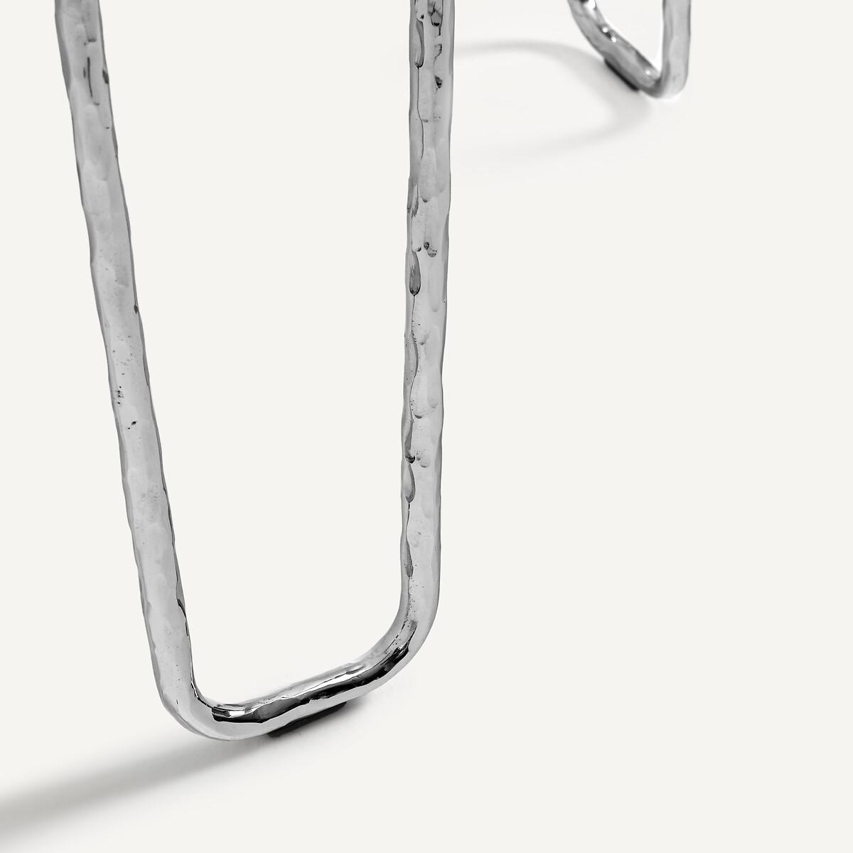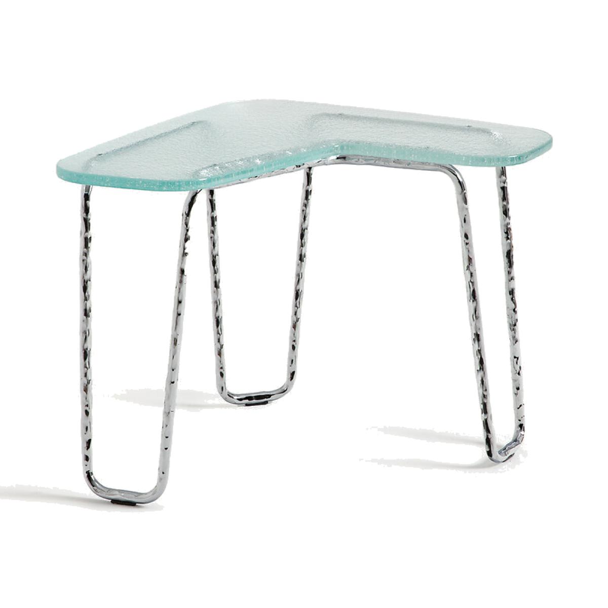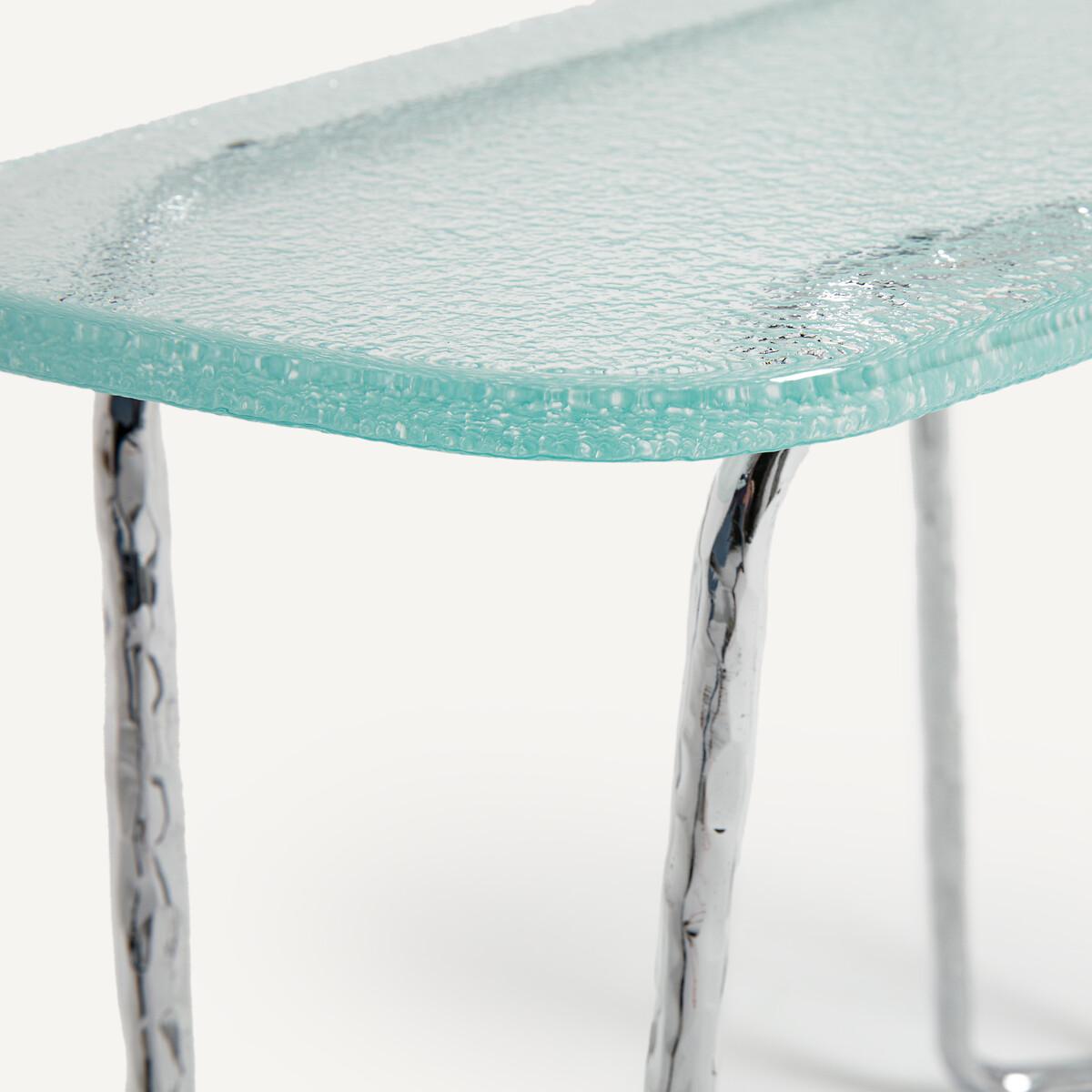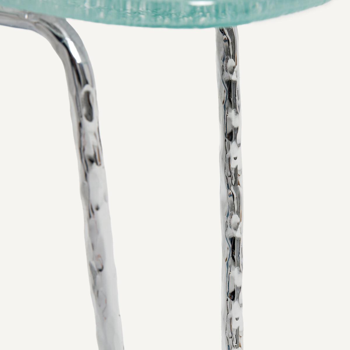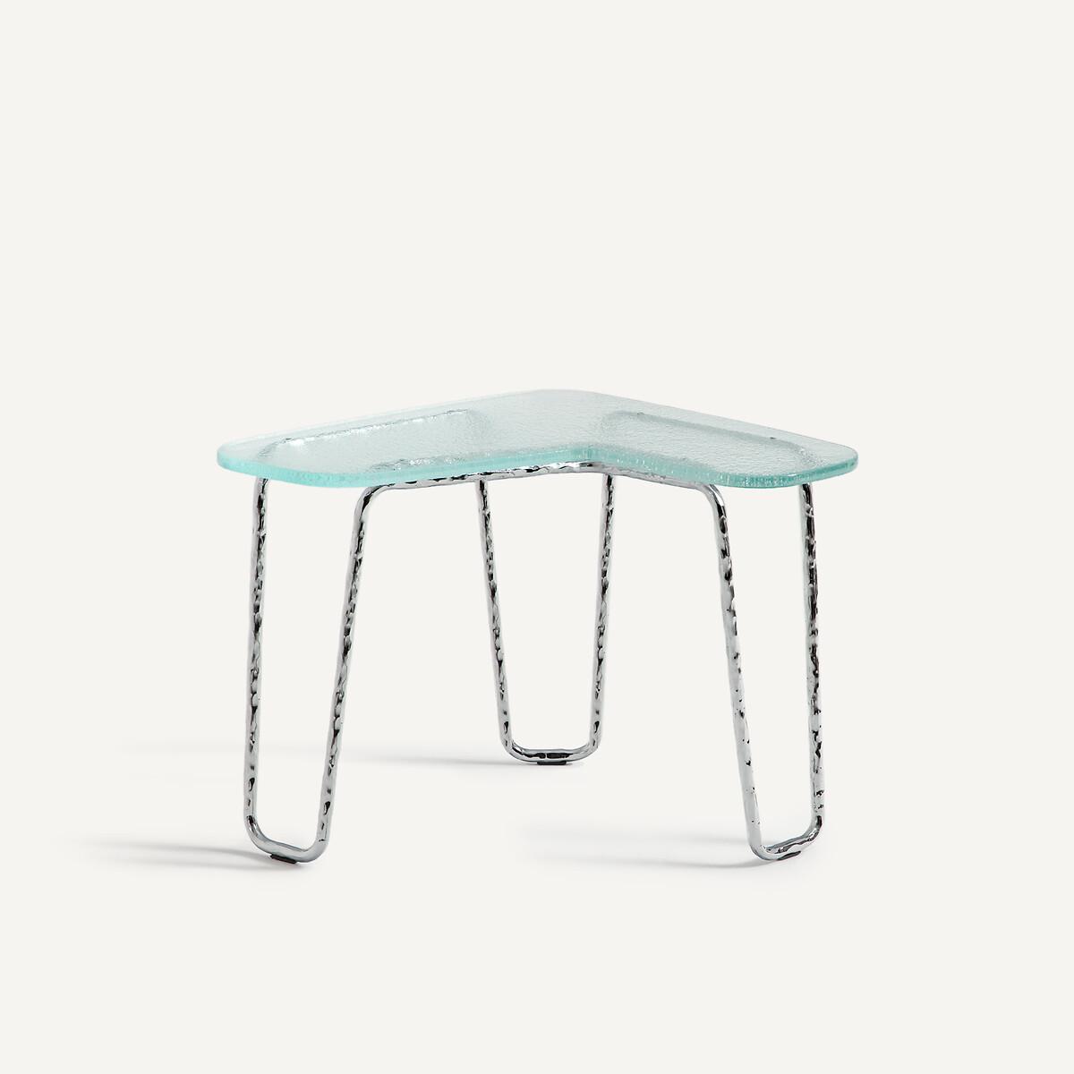 Imagine a miniature archipelago, where each island takes the form of a modular coffee table. The irregularly contoured glass table tops rest on a chrome-plated metal frame, capturing the light and evoking the sparkling reflections of the water. The Oasis collection invites you on an aquatic escapade, a soothing plunge into a world inspired by the sea. The Oasis coffee table is part of the "Nomad Escape" collection designed by Otto, an agency founded by architect and designer Paola Navone. Led by Cristina Pettenuzzo and Domenico Diego, this collection has a bold and unique identity, transforming the home into an bright and positive oasis of well-being for all seasons. Product Details • Tempered glass table top with rounded edges, 1.5cm thick: smooth top, granite underside • Tubular legs and frame in hand-hammered iron with chrome finish. Each piece is unique • Silicone pads to be placed between the table top and frame. Dimensions • Width: 61cm • Height: 40cm • Depth: 43cm • Requires some assembly (based to be attached). Dimensions and weight of parcel2 parcels L47 x H44.5 x D47cm. 3.2kg L70 x H8 x D51cm. 6.5kg