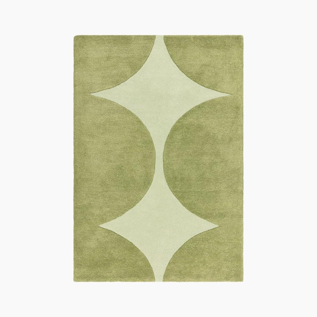 I love this bright, modern rug for adding a pop of colour and texture to contemporary spaces. Its sage green shade makes it versatile enough to work well in both minimalist interiors and more eclectic, colourful rooms. The tufted texture adds a tactile element underfoot, making it practical for living rooms or bedrooms, while the bold geometric design provides a stylish focal point. For styling tips, consider pairing it with neutral or similarly muted furnishings to let the rug really stand out, or mix it with more vibrant accessories to create an energetic vibe. It’s a great piece to incorporate in spaces that need a fresh update without overwhelming the overall colour scheme.