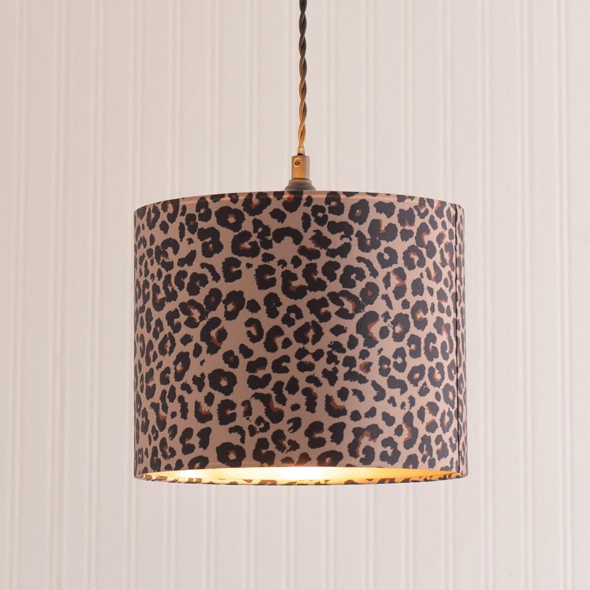 I love this little giraffe print shade for adding a playful yet sophisticated touch to a room. Its metallic inner lining gives off a warm glow and enhances the leopard print’s richness, making it ideal for eclectic or contemporary interiors. It works well in living rooms, bedrooms, or even a cosy reading nook, especially when paired with natural materials or neutral colour palettes to let the print stand out. Practical styling tips include hanging it at a height that offers gentle, diffused light, and pairing it with simpler accessories to avoid competing patterns. The brown hue makes it versatile and easy to incorporate into various colour schemes, making it a clever choice for adding character to your space.