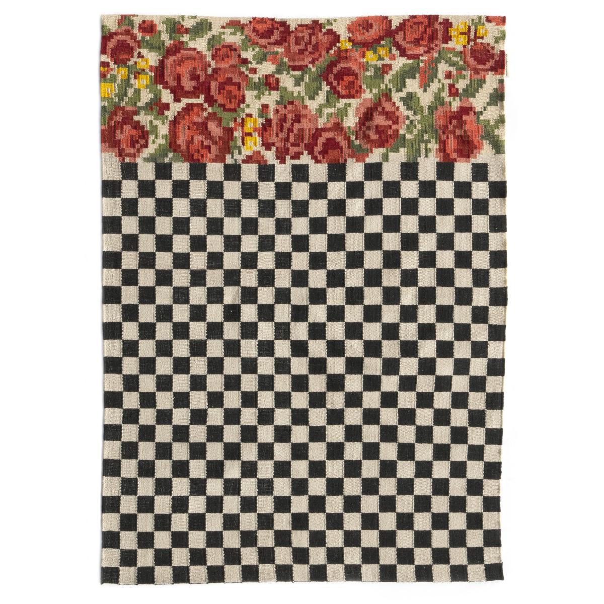 Give your outdoor spaces a contemporary, original touch! This beautiful Oaxaca outdoor rug offers a bold mix of simple geometric shapes and flowers. It consists of an elegant checkerboard effect in black and white, enhanced by brightly coloured roses on one end of the rug. Handcrafted in 100% polyethylene, Oaxaca is a Dhurrie rug: a hand-woven Indian kilim. It lets you appreciate the details of the weave in the purest respect for tradition. Inspired by the design of traditional rugs, Nani Marquina created this rug by giving it the same characteristics as an indoor rug. However, Oaxaca has been made to withstand life outdoors. It is extremely resistant to water, weather and UV, while retaining the essence of the brand: offering a comfortable object appreciated by everyone, no matter where it’s placed. This generously sized rug comes in two distinct sizes: 170 x 240 cm and 200 x 300 cm.