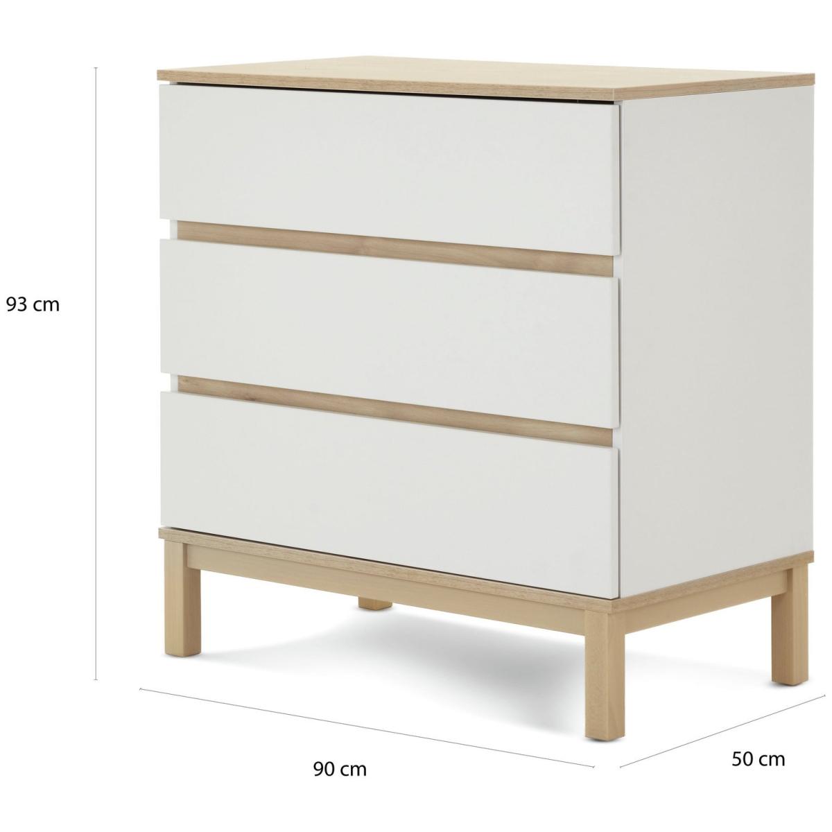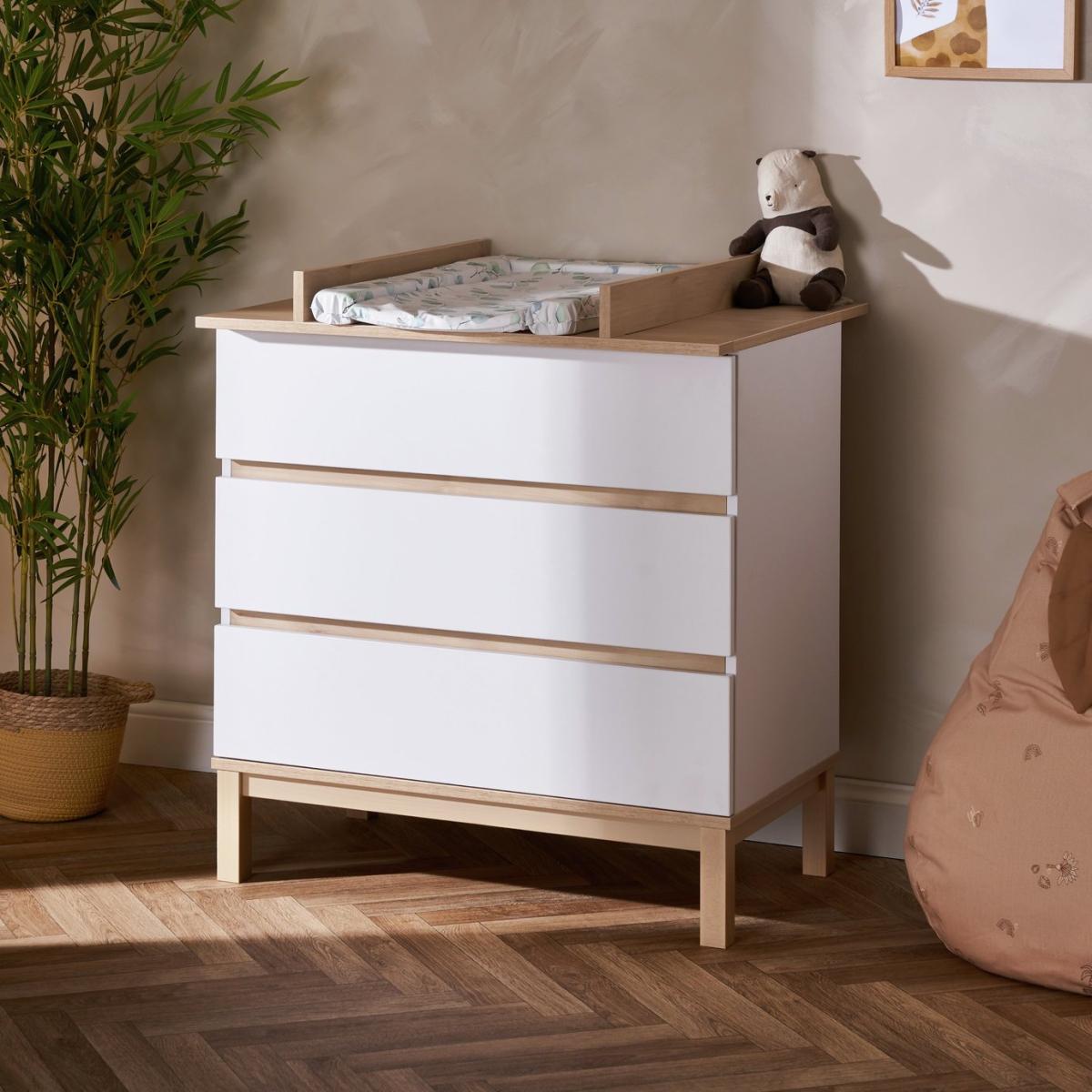 The name Astrid is of Scandinavian origin and means "divinely beautiful". With sleek lines, a two-tone colourway in a choice of white or Satin and super modern handle-less drawers and doors this collection certainly lives up to its name. With both practicality and style, The Astrid is the perfect addition to any dream nursery. Sleek modern craftmanship & two-tone colourways. Suitable from birth to approximately five years old. Part of the Astrid collection. 3 piece set, including: cot bed, wardrobe, changing unit,. Converts to toddler bed. Toddler bed suitable for ages 2 year to 5 year. Made of wood. Cot features Cot L144, W75, H93cm. Weight 39.5kg. Mattress base adjustable height 30cm, 46cm, 60cm. Mattress not included. Mattress required: L140, W70,. Dresser features Dresser H100, W90, D50cm. Wardrobe features Wardrobe H180, W90, D50cm. Weight 63.6kg. 2 doors. 2 hanging rails. Hanging rail weight capacity 5kg. 1 fixed shelf. Chest of drawers features Drawers H100, W90, D50cm. Weight 49.4kg. 3 drawers. Changer features W46.5, D80cm. Changer top detachable. Packaging Largest box H171, W88, D11cm. General information Packed flat - 1 person recommended. (includes wall fixing). Manufacturer's 2 year guarantee. If the product is over 60cm high it must be securely attached to the wall to prevent overturning.