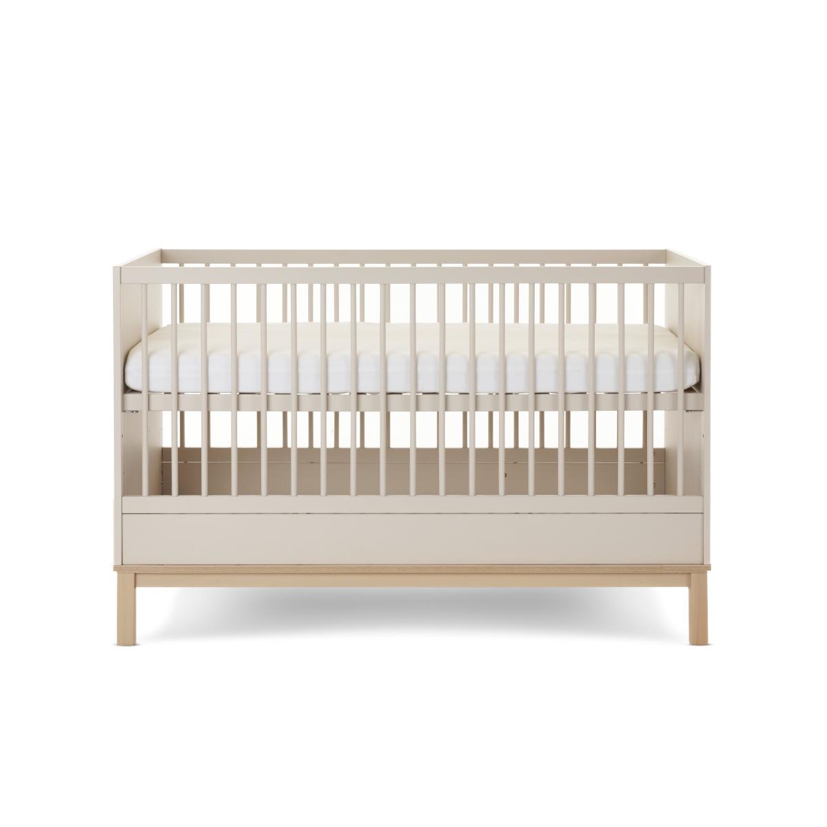 Adaptable and designed with a three-position base height, this cot bed effortlessly evolves from a secure crib for newborns to a toddler bed suitable for children up to approximately five years old. The inclusion of a safety rail ensures a smooth transition, and a 140 x 70cm mattress, available separately, completes this versatile bed.