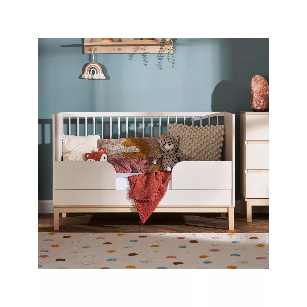 The Obaby Astrid cot bed offers a sleek, minimalist silhouette that works well in modern and Scandi-inspired interiors. Its light, neutral tone makes it versatile and easy to incorporate with a range of colour schemes, from soft pastels to bold, contrasting hues. I love pairing it with simple, textured bedding and natural wood accessories to create a calm and cohesive nursery. Practical styling tips include using a cosy, tactile rug underneath and adding minimalist storage solutions or floating shelves to keep essentials close at hand without cluttering the space. Its timeless design and adjustable height make it a functional choice that grows with your little one while maintaining a contemporary aesthetic.