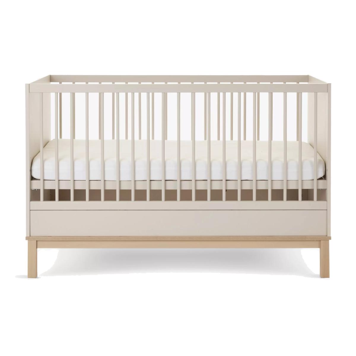 The Astrid cot bed will grow with your little one. Suitable from birth until approximately 5 years old, the 3-position base height ensures there is a setting for each of your child’s milestones. When it's time to transition to a big bed the included dual ended safety rail will provide reassurance and familiarity during an often-daunting time. This cot bed requires an Obaby 140 x 70cm mattress, (available separately).