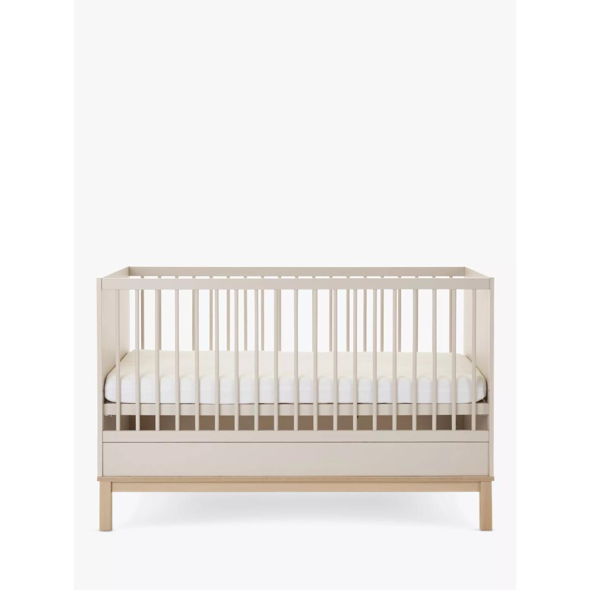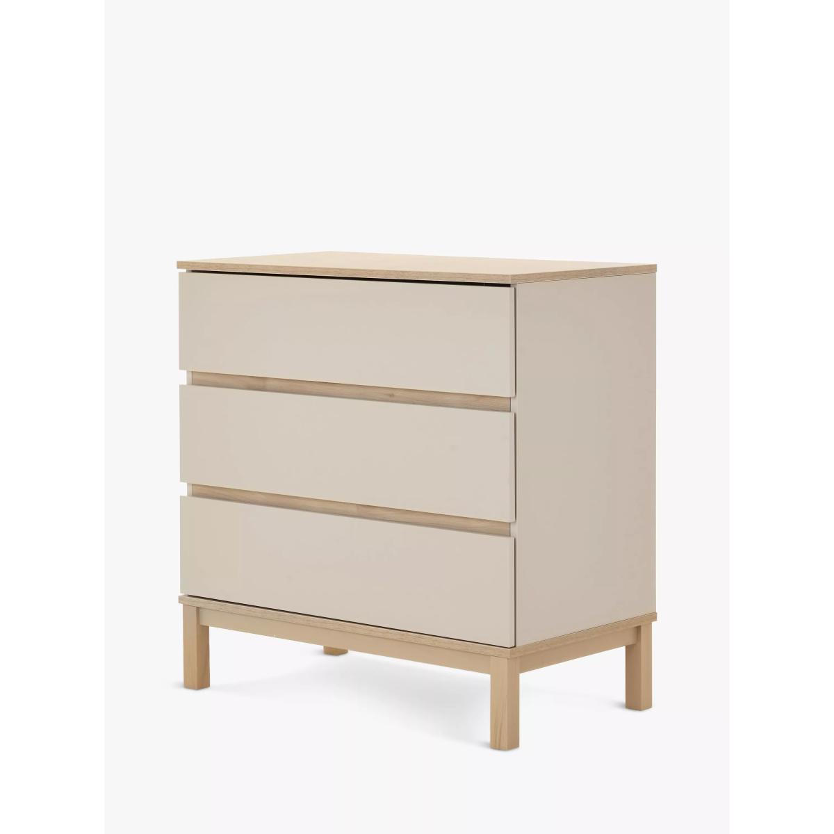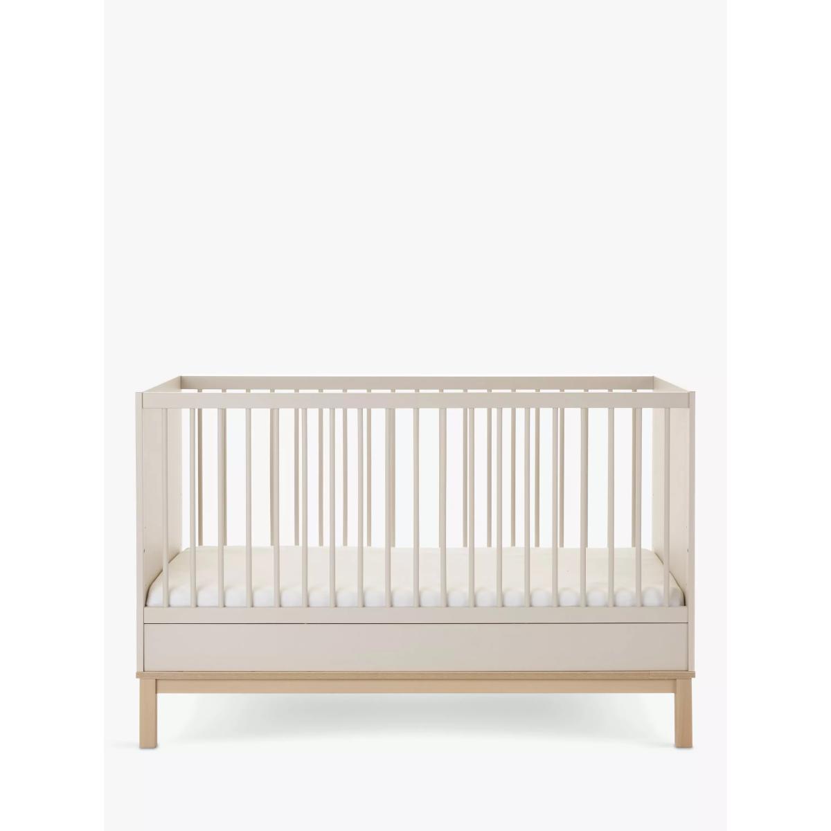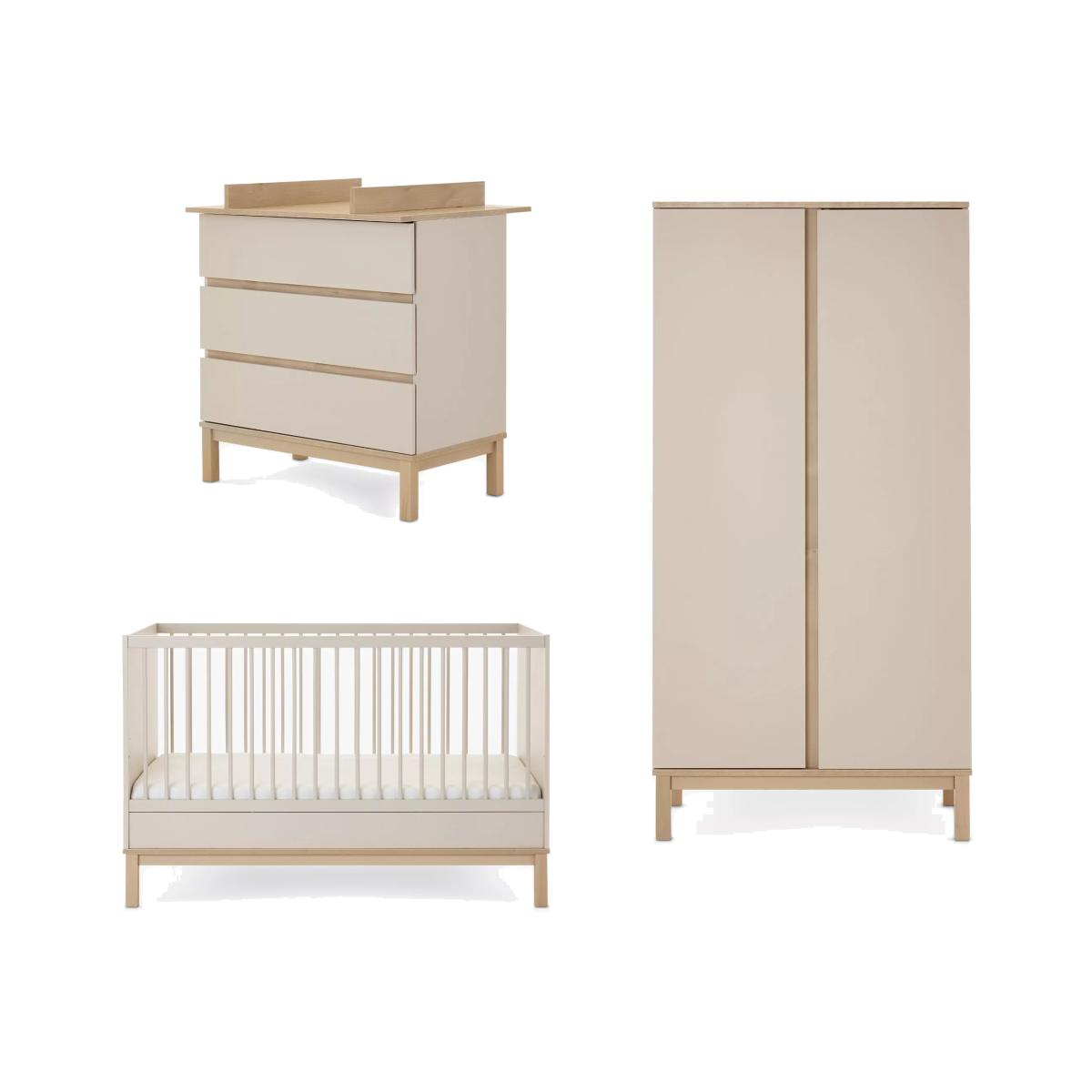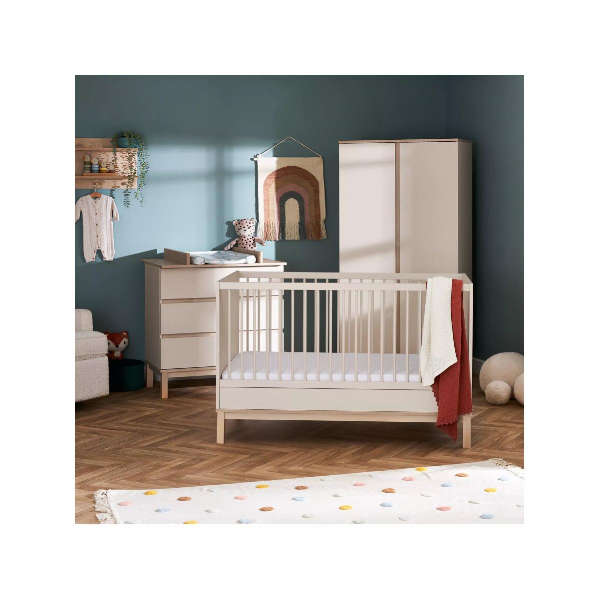 The name Astrid is of Scandinavian origin and means 'divinely beautiful'. With sleek lines, a two-tone colourway and super modern handle-less drawers and doors this collection certainly lives up to its name. With both practicality and style, The Astrid is the perfect addition to any dream nursery. Cotbed: The Astrid cot bed will grow with your little one. Suitable from birth until approximately 5 years old, the 3-position base height ensures there is a setting for each of your child’s milestones. When it's time to transition to a big bed the included dual-ended safety rail will provide reassurance and familiarity during an often-daunting time. This cot bed requires an Obaby 140 x 70cm mattress, (available separately). Dresser: This dresser comes with 3, 34. L capacity drawers and a carefully considered changing area perfect for a changing mat up to 80 x 46.5cm. It has a chic no-handle design and the changing area is removable once it is no longer required to create a flat top chest of drawers. Wardrobe: This double-door wardrobe has one large cupboard space fronted by no-handle doors. It has one internal full-width shelf and two internal hanging rails. For this item, our supplier will provide delivery to a room of your choice.