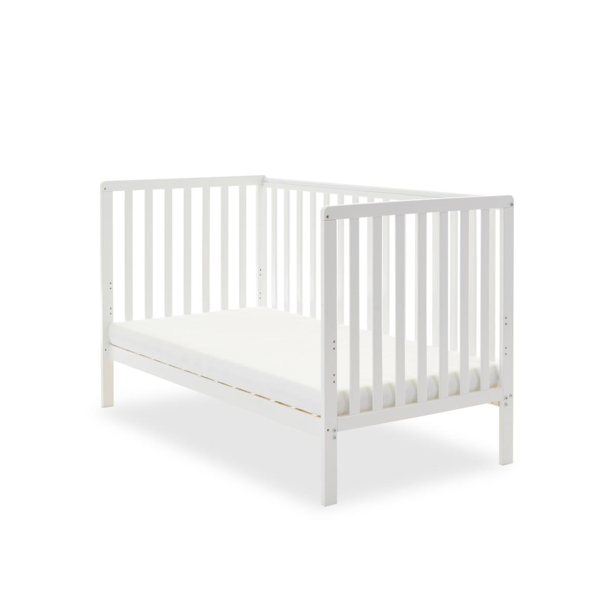 Dimensions H85 x W65 x D124cm Features. OBABY Bantam Cot Bed. Adjustable three-position base height. Slatted ends and sides help you keep an eye on your little one. Teething rails ensure delicate teeth are protected. Requires mattress measuring 120 x 60cm available separately. Coordinates perfectly with the rest of the Obaby furniture range The Obaby Bantam cot offers parents fantastic features on a budget. This cot features protective teething rails a fully open slatted design meaning you can keep an eye on your little one at all times and a three-position adjustable mattress base to ensure your little one is safe and secure from birth to approximately 3 years. .