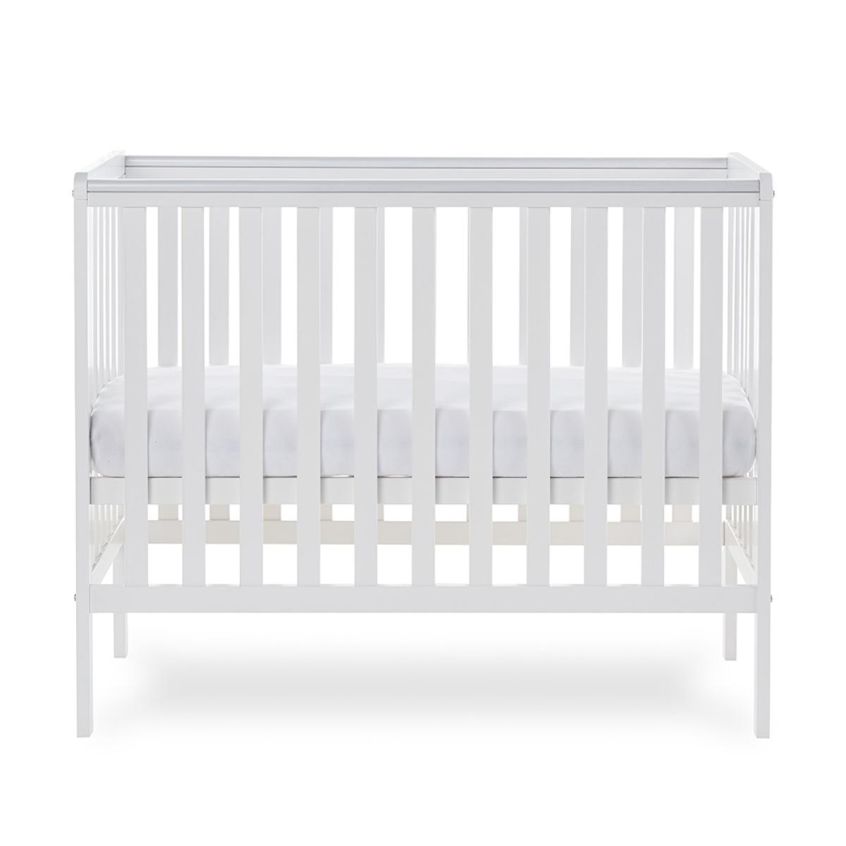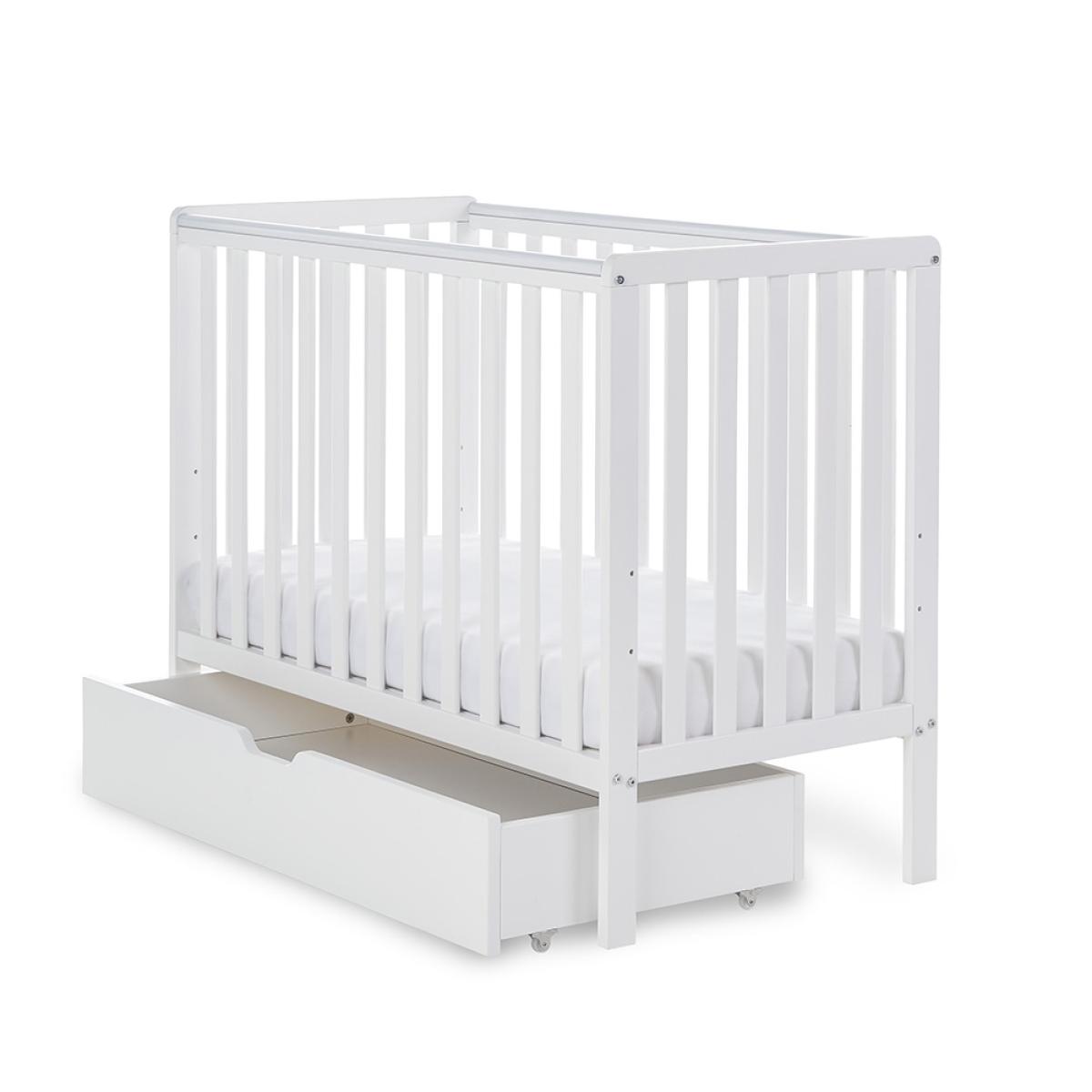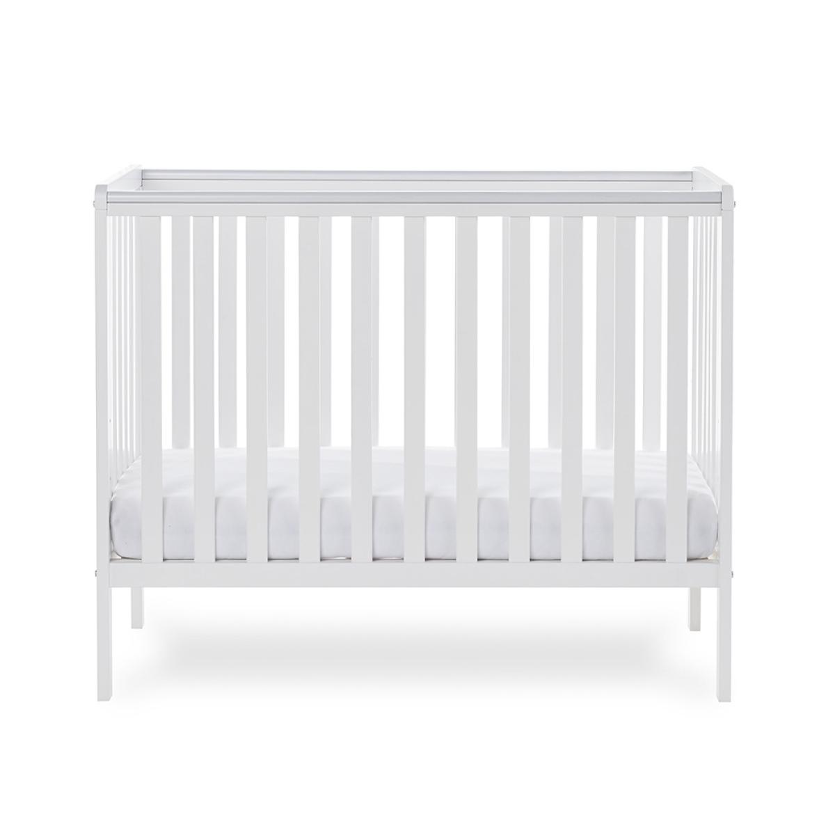 Short on space? Then the Obaby Bantam Space Saver Cot is the one for you and your newborn! Suitable from birth to 18 months and featuring a 3 position base height, simply lower the mattress as your baby gains confidence and keep them safe. Designed with teething rails, when their gnashers make an appearance they'll be protected too! And the fully slatted design means you can keep an eye on your baby while they count sheep. Available in a choice of colours, pair with a mattress, matching bedding and accessories to create a comfortable and cosy spot for snoozing. With a matching cot top changer available separately, there's no need for full-sized changing units, saving even more space in the nursery!.