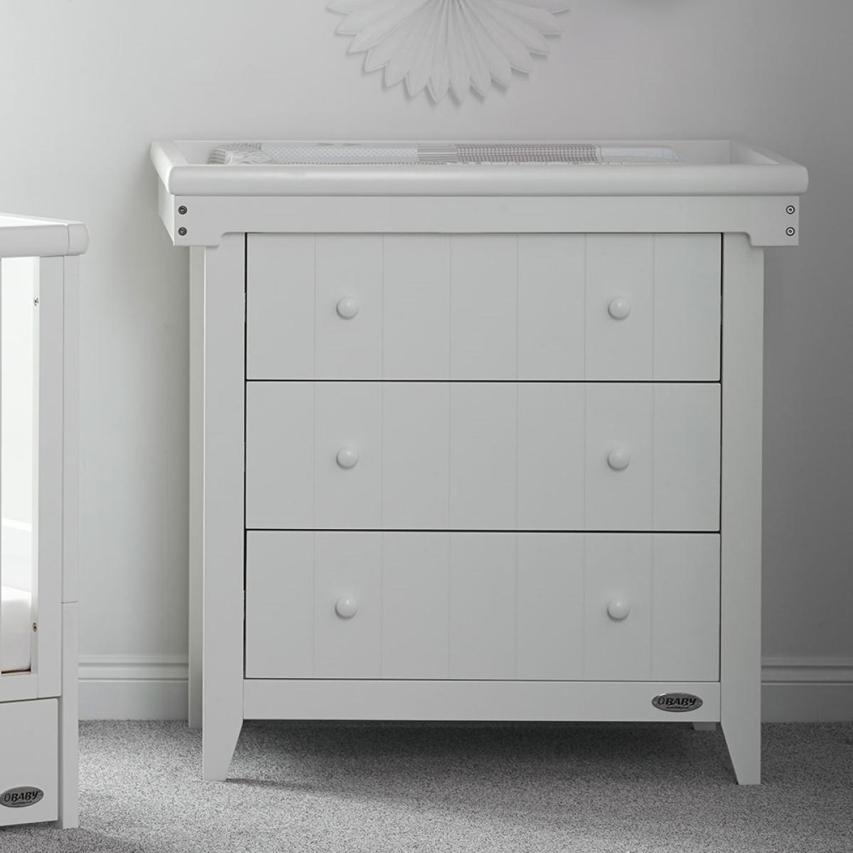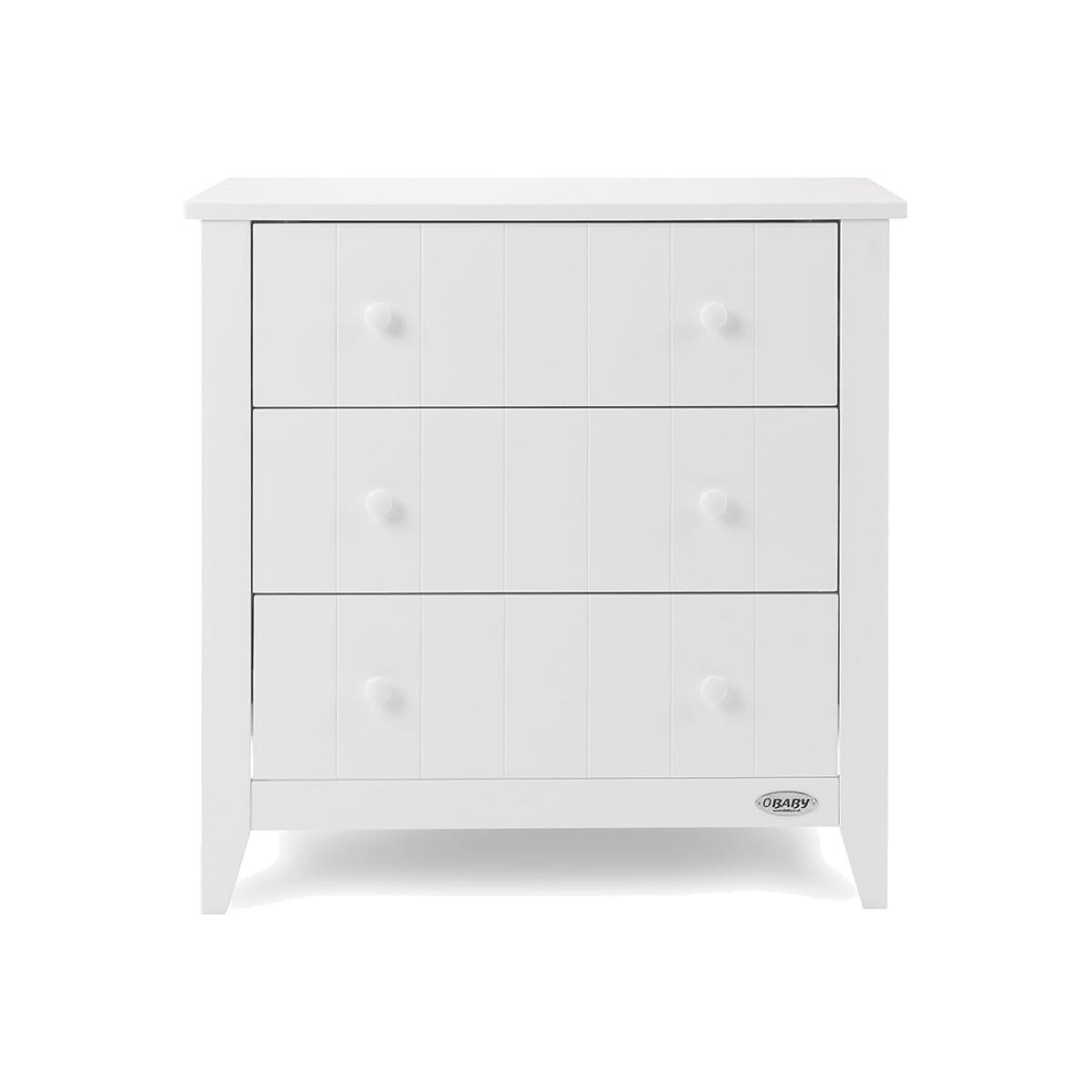 Part of the Belton collection, complete your nursery setup with the Obaby Belton Chest of Drawers. Featuring 3 full length drawers with traditional handles and smooth gliding runners; your newborns adorable outfits and nursery essentials can be neatly stored away and easily accessed when you need them! And with the option to add a multi changer top, quickly convert the dresser into a baby changing table and utilise your space. Finished in white with traditional paneling details, this unit would look gorgeous paired with matching room accessories and bedding and when they're a little older it will still be the perfect storage solution! With a matching cot bed and wardrobe available separately, or as sets, select the pieces to suite your needs!.