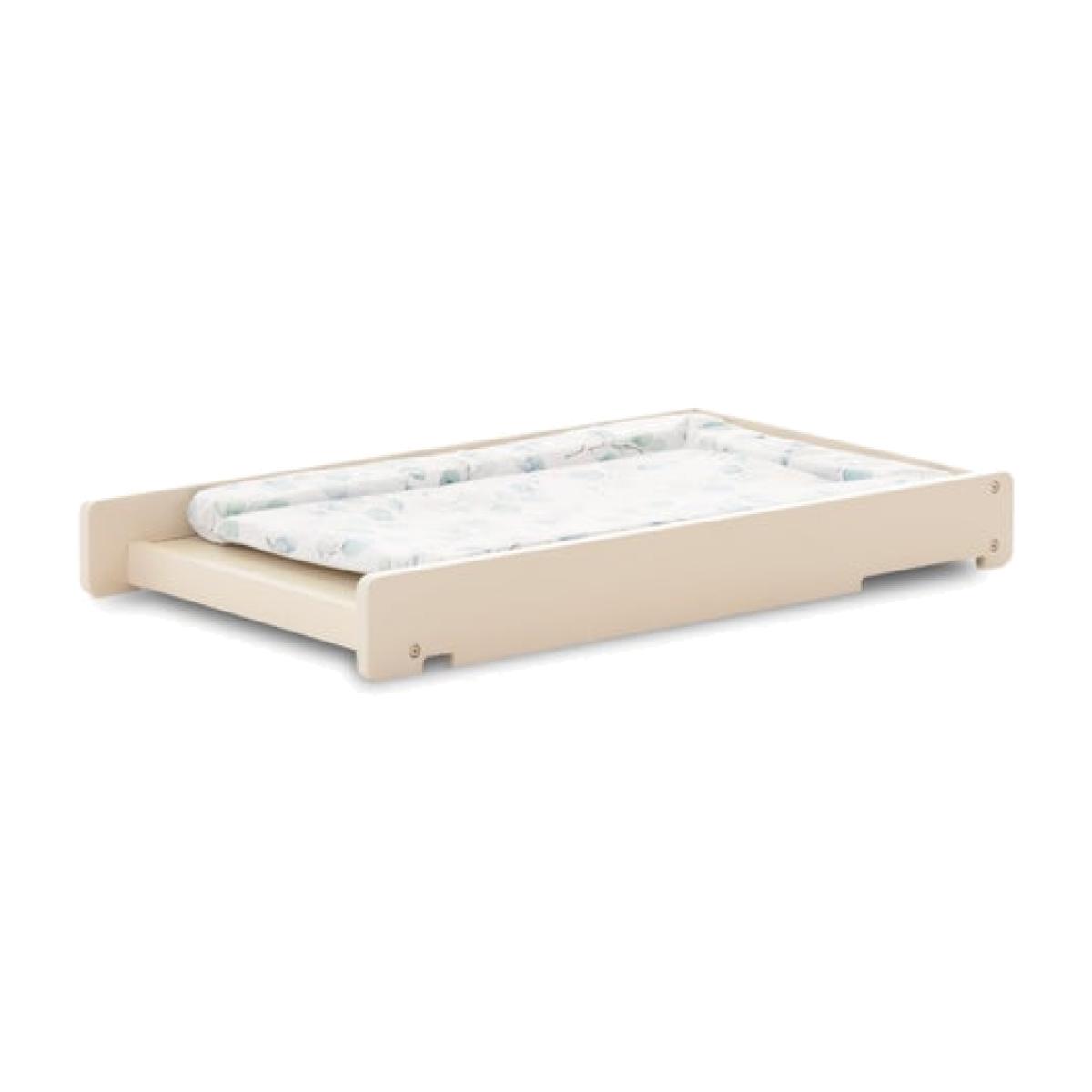 * Compact design * Suitable for 0-12 months * Fits cots and cot beds with a width of 62-72cm * Velcro strap This changer is a compact, space-saving alternative to a full-size changing unit. Designed to fit cots and cot beds with an external top width of 62–76cm, it secures easily with a Velcro strap for added safety. Its easy-clean surface makes maintenance simple, while the elegant design features natural wood accents and brass hardware for a modern, calming aesthetic.