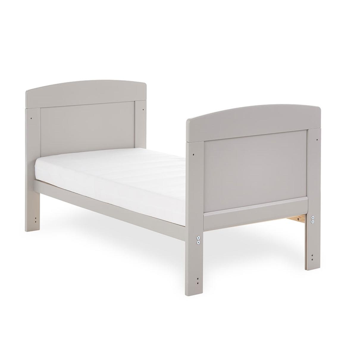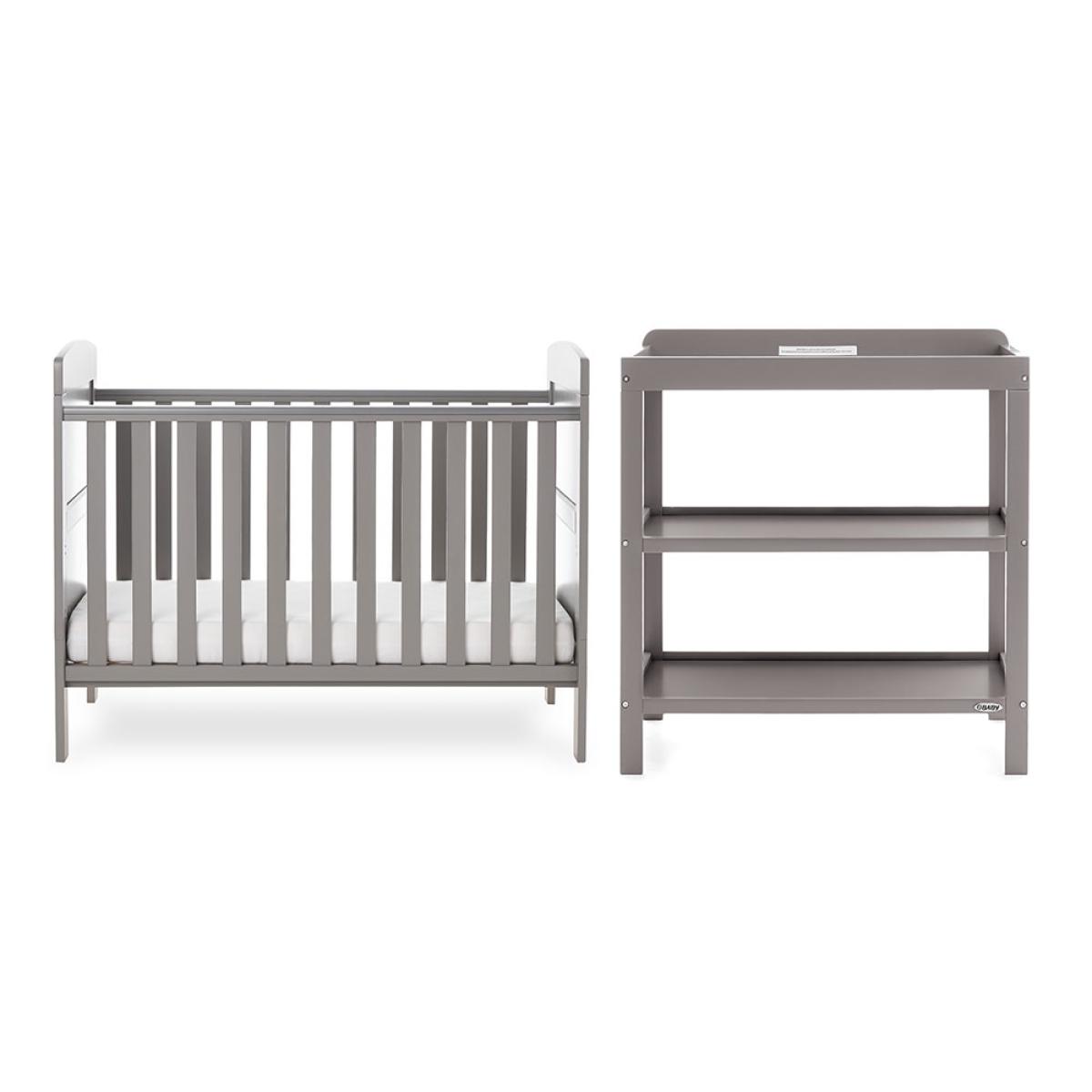 They say great things come in small packages and with the Obaby Grace Mini Cot Bed 2 Piece Nursery Furniture Set that's certainly true! The mini cot bed has 3 varying base heights; ensuring that as your baby continues to grow they're kept safe and sound as they start to gain confidence with sitting and standing independently. And with the addition of teething rails, their tiny little teeth are protected too! Designed to be convertible, simply transform the cot to a toddler bed. Including an open changing table, the spacious top has been designed to fit a changing mat and set at a height for added convenience. Featuring open storage shelves; nursery essentials can be kept close-by, making night time changes that bit easier. Available in a choice of colours, select the set to suit your mini man or miss!.