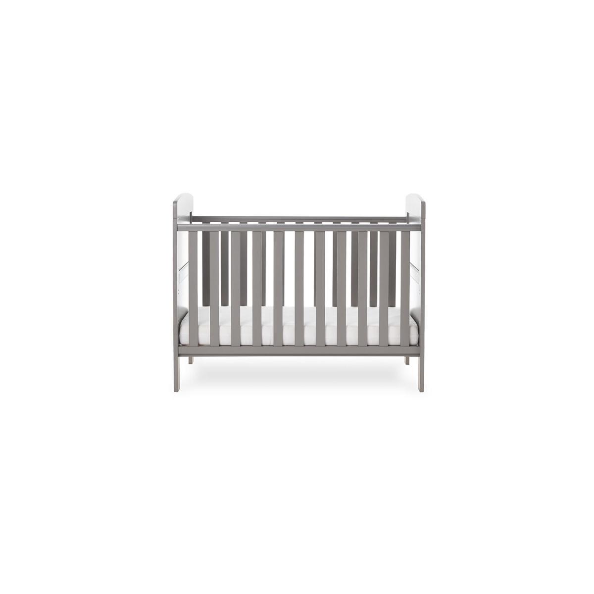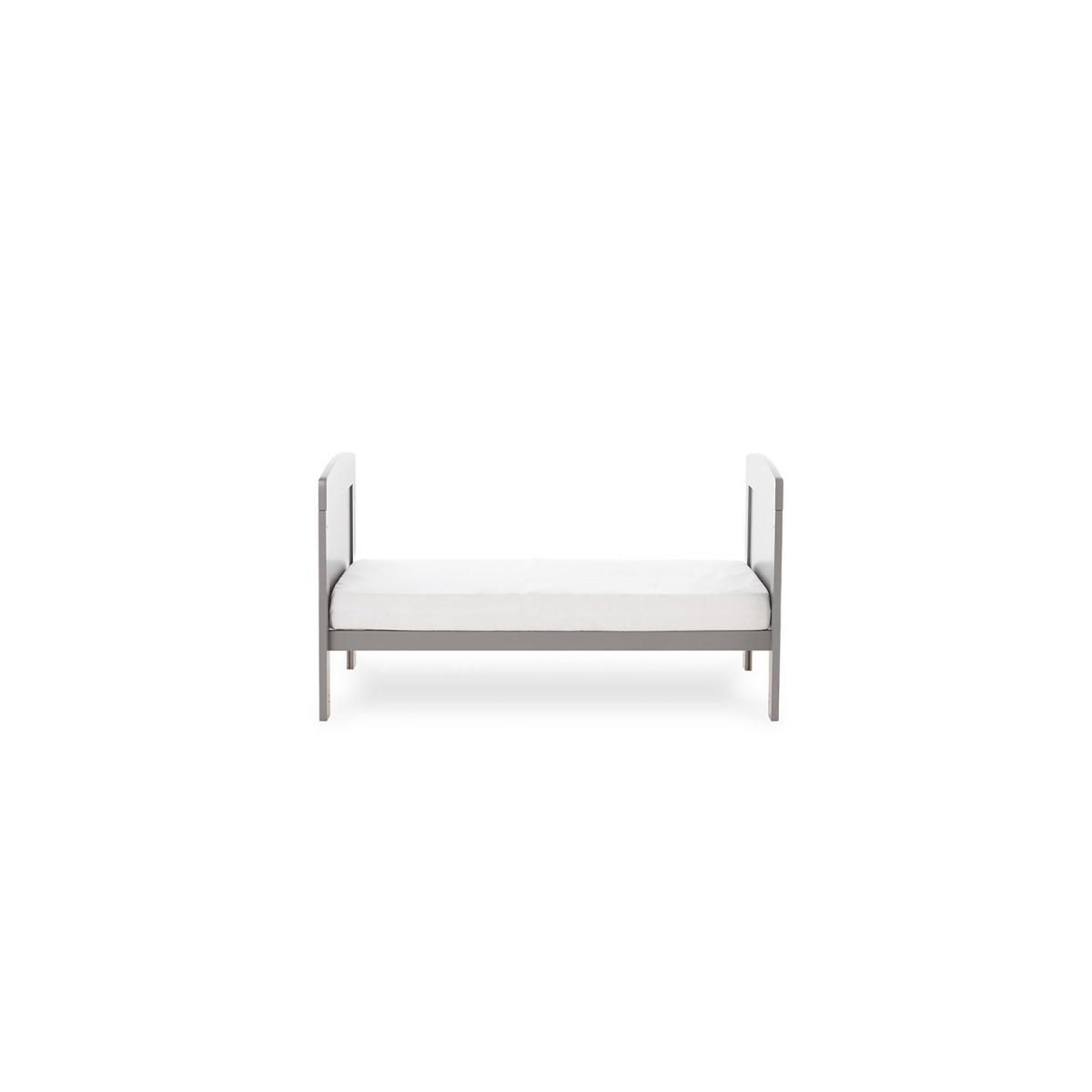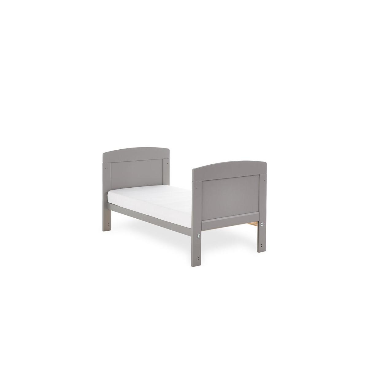 Dimensions H82 x W66.5 x D124cm Features. OBABY Grace Mini Cot Bed. Adjustable three-position base height. Converts into a stylish toddler bed. Protective teething rails along both side rails. Suitable from birth to approximately three years old. Requires 120 x 60cm mattress The Grace Mini cot bed features a compact design yet maintains the same valuable features of the full-sized version perfect for those who love the simplicity and elegance of the Grace cot bed but have limited space. Our simple but stunning mini cot bed features open slatted sides which are perfect for watching over your little treasure during their most peaceful times and the presence of teething rails ensures their delicate teeth are protected. As your child grows learning to sit and stand the mattress base can be lowered with three base heights available in total providing extra security and reassurance. Then by simply removing the fixed sides and splitting the end panels the cot bed converts seamlessly from a cot into a cosy and stylish junior bed meaning minimal disruption during little one’s often daunting transition. Once the change is complete the bed can be suitable for a child up to approximately three years meaning the Grace Mini offers maximum durability and great value. .