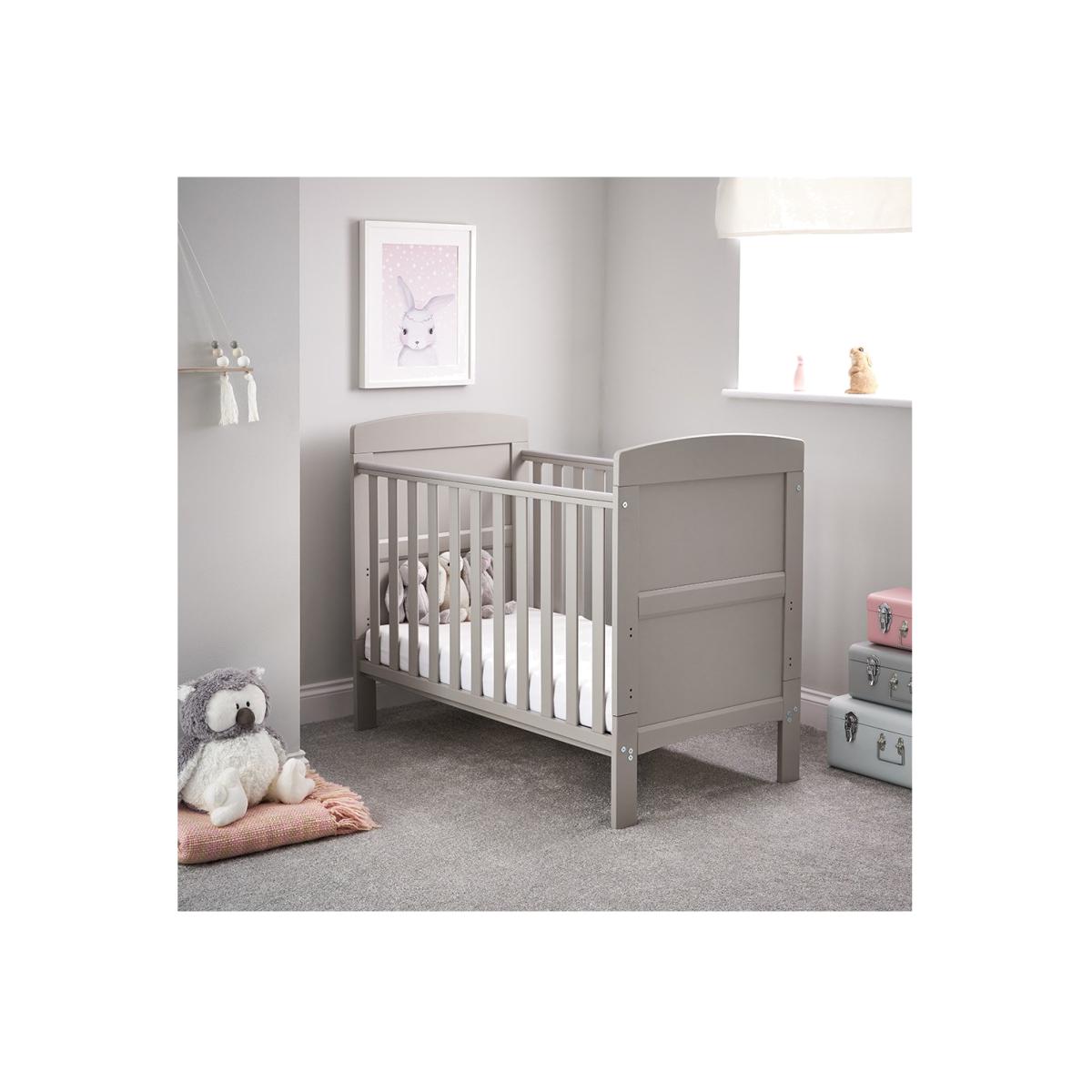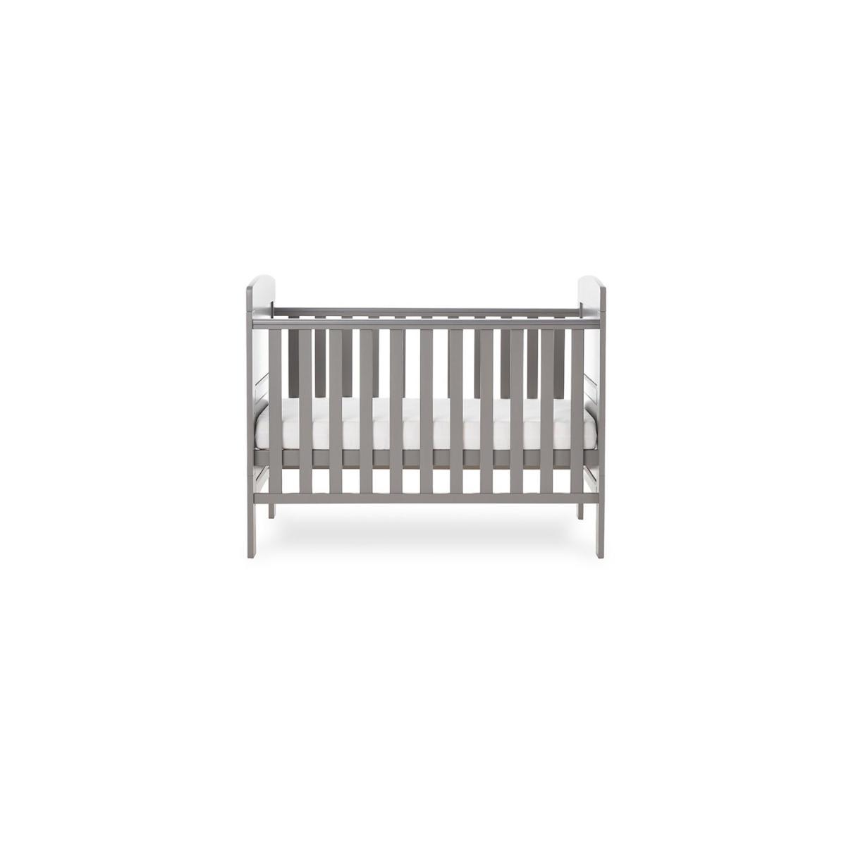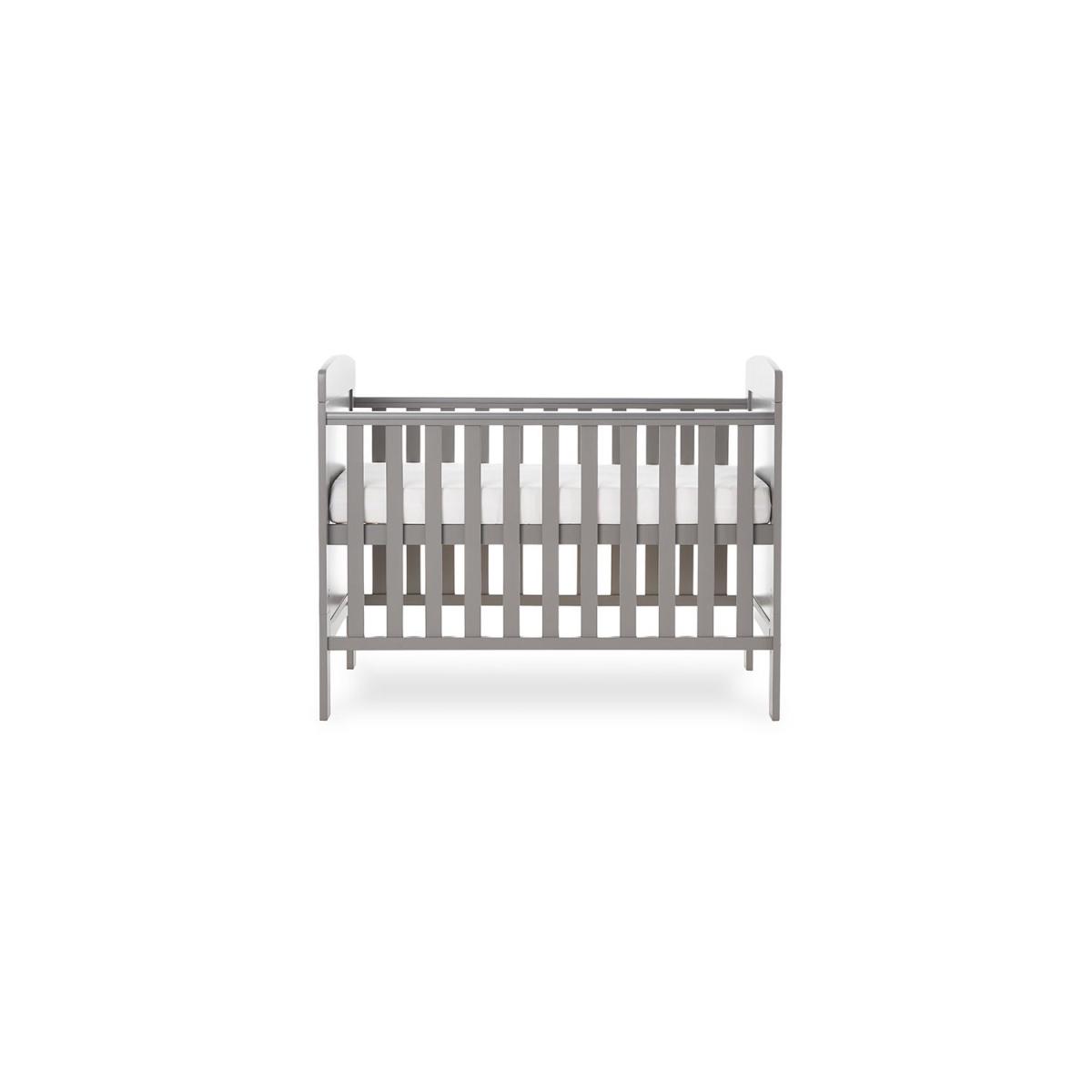 Dimensions H82 x W66.5 x D124cm Features. OBABY Grace Mini Cot Bed. Adjustable three-position base height. Converts into a stylish toddler bed. Protective teething rails along both side rails. Suitable from birth to approximately three years old. Requires 120 x 60cm mattress The Grace Mini cot bed features a compact design yet maintains the same valuable features of the full-sized version perfect for those who love the simplicity and elegance of the Grace cot bed but have limited space. Our simple but stunning mini cot bed features open slatted sides which are perfect for watching over your little treasure during their most peaceful times and the presence of teething rails ensures their delicate teeth are protected. As your child grows learning to sit and stand the mattress base can be lowered with three base heights available in total providing extra security and reassurance. Then by simply removing the fixed sides and splitting the end panels the cot bed converts seamlessly from a cot into a cosy and stylish junior bed meaning minimal disruption during little one’s often daunting transition. Once the change is complete the bed can be suitable for a child up to approximately three years meaning the Grace Mini offers maximum durability and great value. .