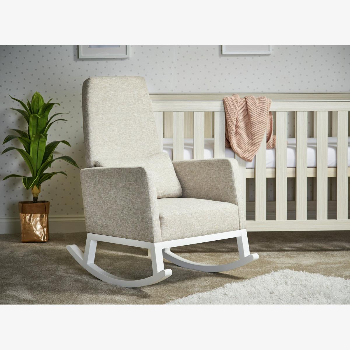 Sit back and relax with the Obaby high back rocking chair. Whether it be for feeding time or just relaxing in the nursery with your little one, the gentle rocking motion of the chair will soothe your little one whilst helping you unwind. Gentle rocking motion for aid in relaxing and thick foam seat cushioning. High back design and additional cushion provide full back support and comfort. Sturdy solid wood frame for long lasting support and neutral colour allows it to fit in any nursery setting. General information: Weight 18.1kg. Size H104, W65, D88cm. Suitable from birth. Package Dimensions: Package 1 dimensions: H90, W60, D33cm. Package 1 weight: 20kg. General information: Manufacturer's 2 year guarantee.