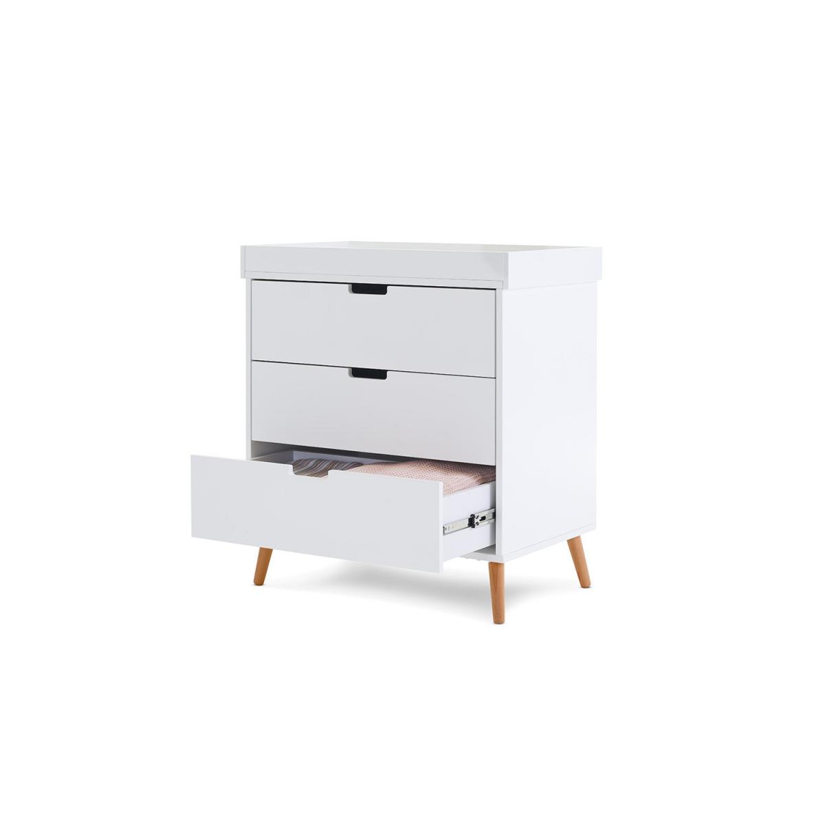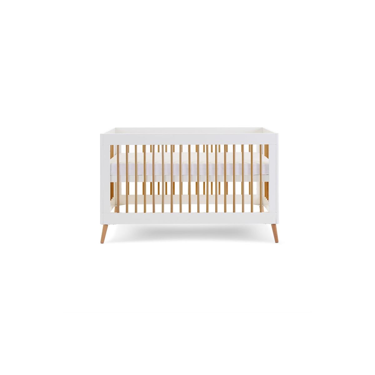 Features we love Clean-cut Scandinavian design with two-tone colourway Cot bed has adjustable, three-position base height Includes a safety rail for toddler bed transition Cot bed suitable from birth to approximately four years old Three 34. L capacity drawers Carefully considered changing area perfect for the use of a changing mat up to 80 x 46.5cm Changing area is removable once no longer required to create a flat top chest of drawers Need to know Cot bed Product dimensions: 145 × 75 × 89 cm Bed mattress size: 140 x 70 cm Bed base: Wooden slatted Age range: 0+ to approximately 4 years old Changing station Product dimensions: 49.5 × 83 × 91.5 cm Changing space dimensions: use of a changing mat up to 80 x 46.5cm Number of drawers: 3 Includes: Anti-tilt strap for the wall More info Colour: White and natural pine Finish: Painted and natural For use: Indoors Assembly required: Yes Mattress included: No DELIVERY RESTRICTIONS Please note we are only able to ship Obaby products UK Mainland postcodes. We are unable to ship to Ireland, Northern Ireland, Scottish Highland or the Channel Islands.