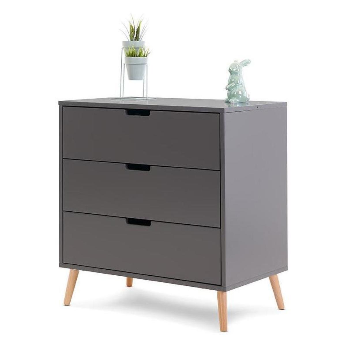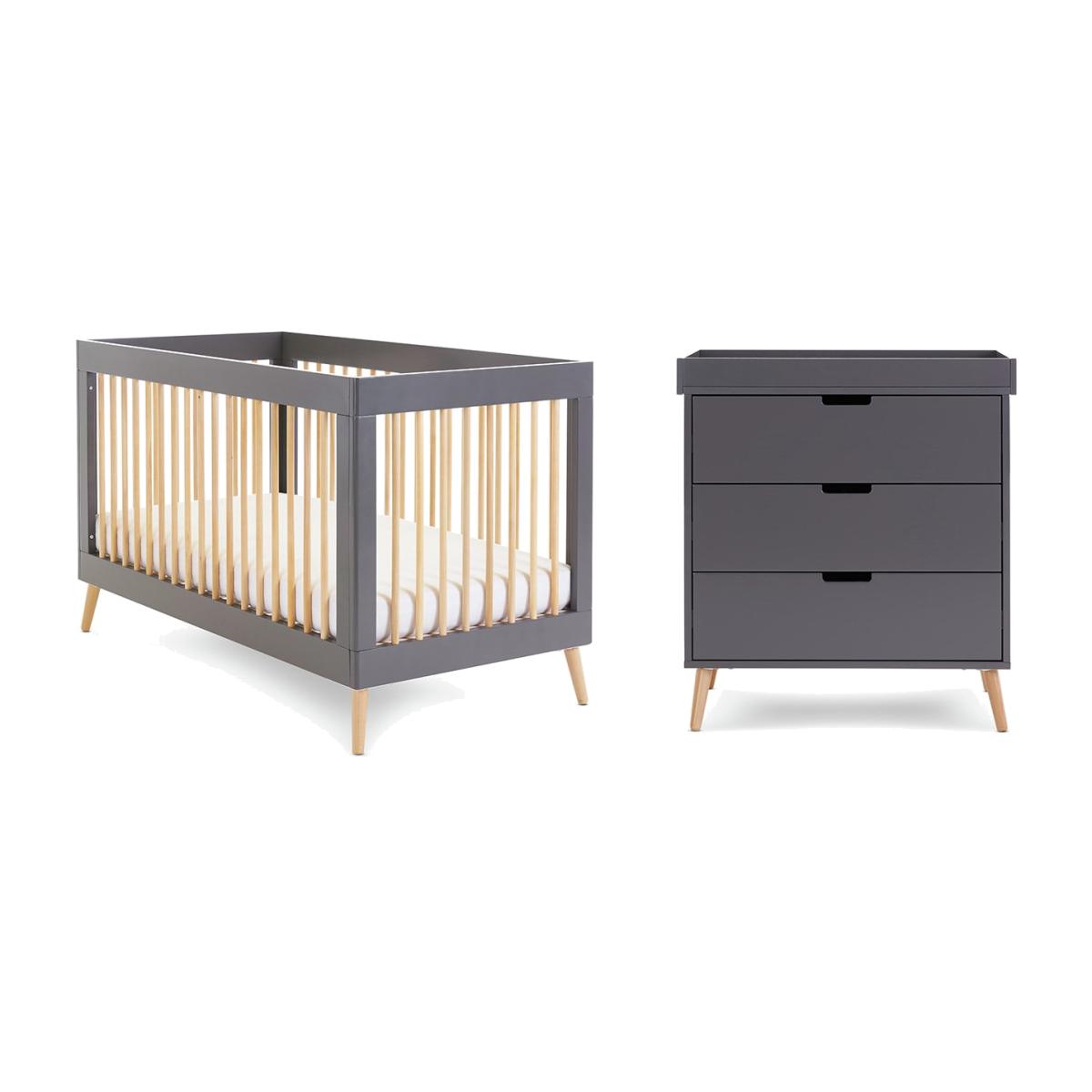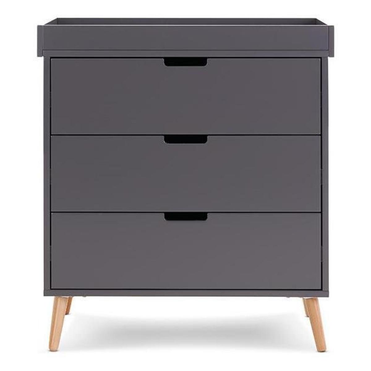 The Maya range from Obaby is inspired by Scandinavian design, featuring a clean-cut finish and two-tone colourway, making it the perfect addition for families looking to create a modern and stylish nursery. The Maya changing unit is the perfect storage companion, featuring three 34. L capacity drawers with recessed handles that enable you to easily put away and quickly locate your little one's belongings. Adjustable three-position base height cot bed that can transform into a toddler bed. Changing unit features three 34. L capacity drawers. Part of the Maya collection. 2 piece set, including: cot bed, chest of drawers, changing unit, changer top. Made of pine. Self-assembly. If the product is over 60cm high it must be securely attached to the wall to prevent overturning. Suitable from birth month and overto 4 years. Cot features Cot L145, W75, H89cm. Weight 31.9kg. 3 position adjustable mattress to lower the baby as they grow. Mattress not included. Mattress required: L140, W70, D10cm. 2. Height under cot 16cm. Dresser features Dresser H91.5, W83, D49.5cm. Chest of drawers features Drawers H91.5, W83, D49.5cm. Weight 48.8kg. 3 drawers. Chest of drawers internal drawer H12, W70, D38cm. Changer features Changer top detachable. Changer H15, W83, D49cm. Packaging Comes in 4 boxes. Largest box H160, W84, D20cm.