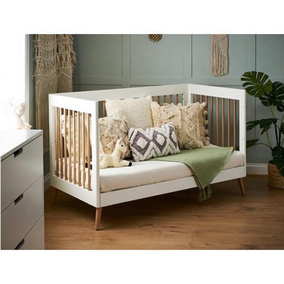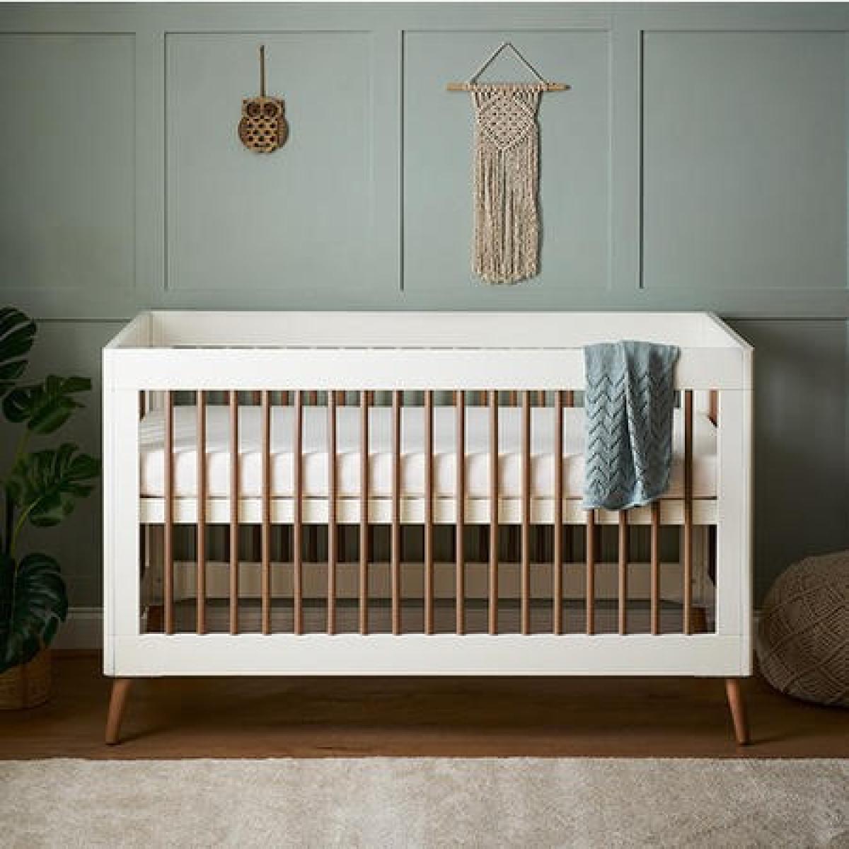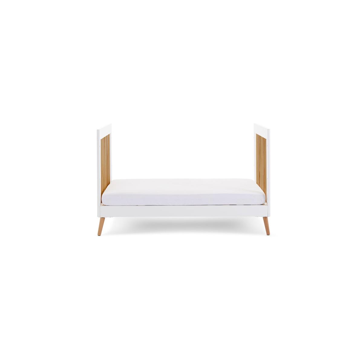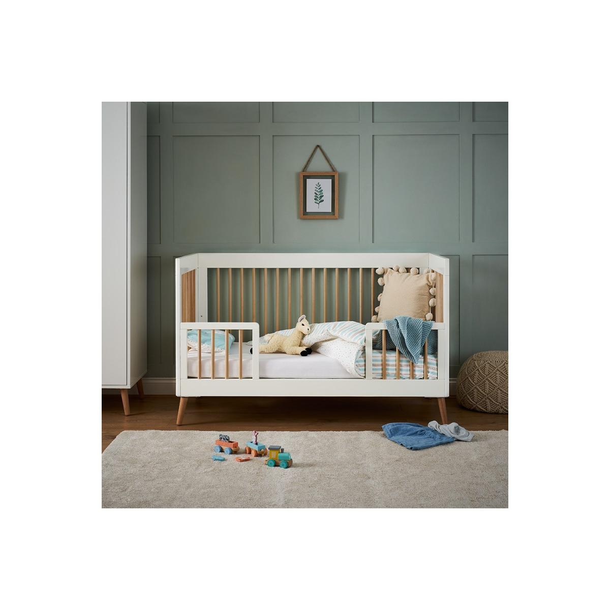 The Maya range from Obaby is inspired by Scandinavian design, featuring a clean-cut finish and two-tone colourway, making it the perfect addition for families looking to create a modern and stylish nursery. Suitable from birth, the Maya cot bed will grow with your little one. The top position of the three height-adjustable mattress base allows you to put down your baby with less pressure and strain applied to your back and as they develop and start to find their feet, you can maintain their safety by lowering the base. When your little one is ready to begin their transition, the included dual ended safety rail will provide reassurance and familiarity during an often daunting time and once they are used to their “big bed” this can be simply removed to create a stylish toddler bed.