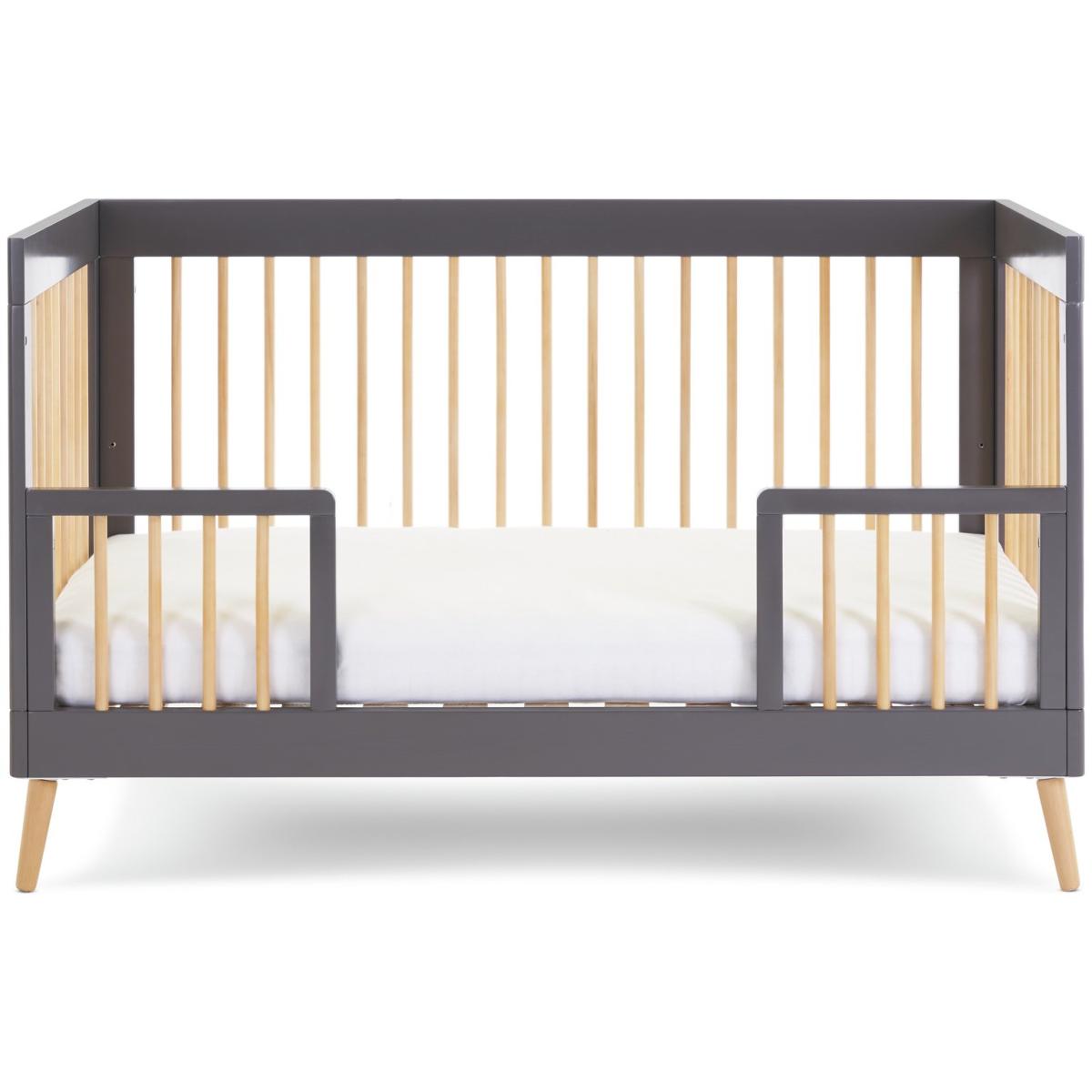 Suitable from birth, the Maya cot bed will grow with your little one. The top position of the three height-adjustable mattress base allows you to put down your baby with less pressure and strain applied to your back and as they develop and start to find their feet, you can maintain their safety by lowering the base. When your little one is ready to begin their transition, the included dual ended safety rail will provide reassurance and familiarity during an often daunting time. Part of the Maya collection. Suitable from birthmonth to 4 years. Winner of Mum and Me. Made from pine. Self-assembly. Cot Features Size L145, W75, H89cm. Weight 31.6kg. 3 position adjustable mattress base - allows you to lower the height of the mattress as your baby learns to sit and stand. Height under cot 16cm. Converts to toddler bed. Toddler bed suitable for ages 2 years to 4 years. Mattress Features Mattress size L140, W70, D10cm. Mattress not included.