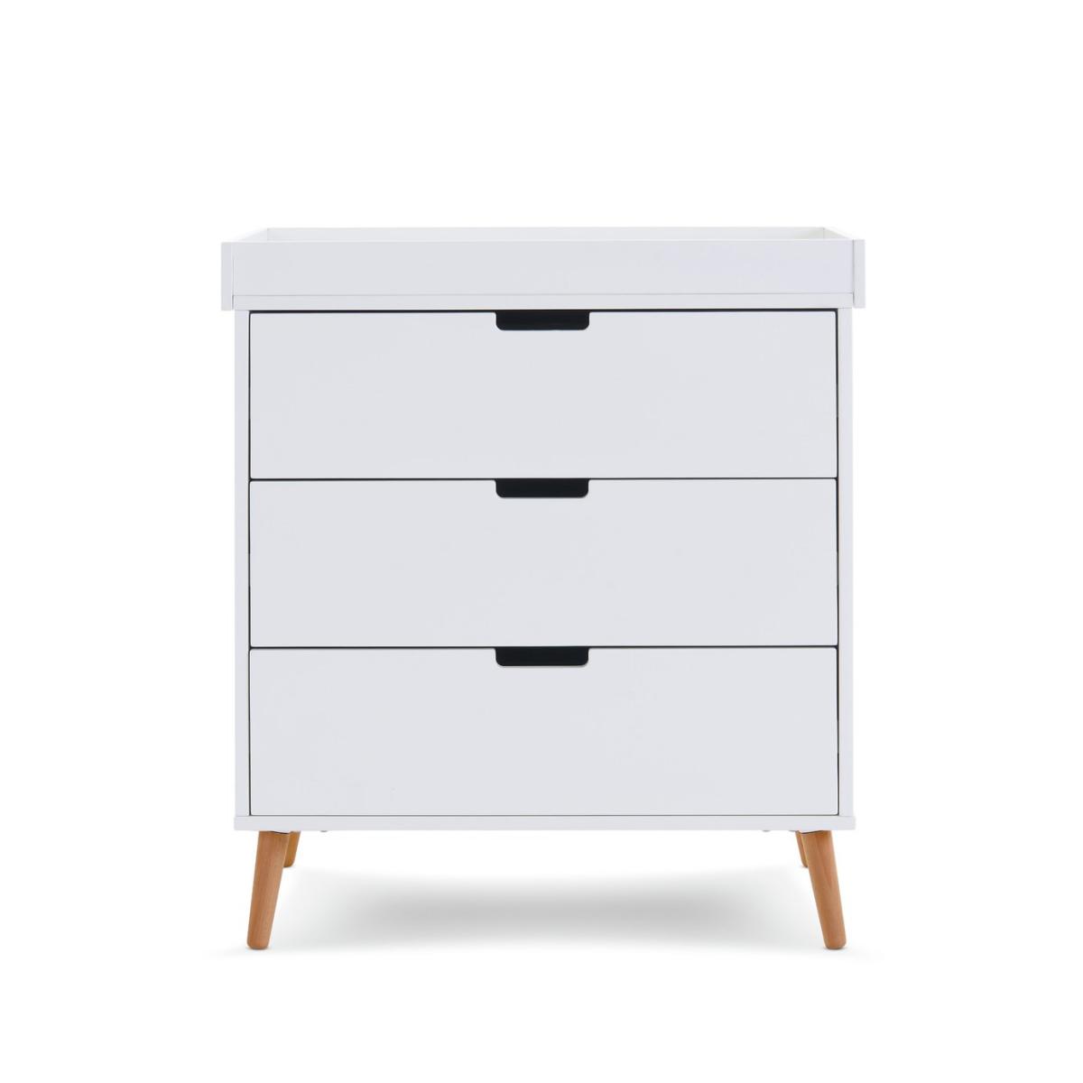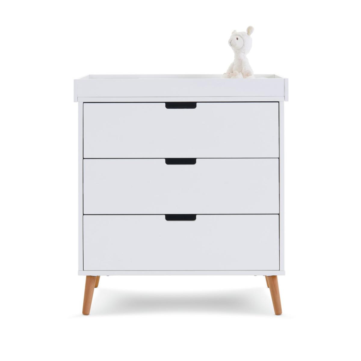 The Maya changing unit is the perfect storage companion, featuring three 34. L capacity drawers with recessed handles, enabling you to easily put away and quickly locate your little one's belongings. On top of the unit is a changing area capable of fitting a changing mat up to 80 x 46.5cm. Once the changing area is no longer required it can be removed to create a stylish, flat-top chest of drawers that can be used for years to come.