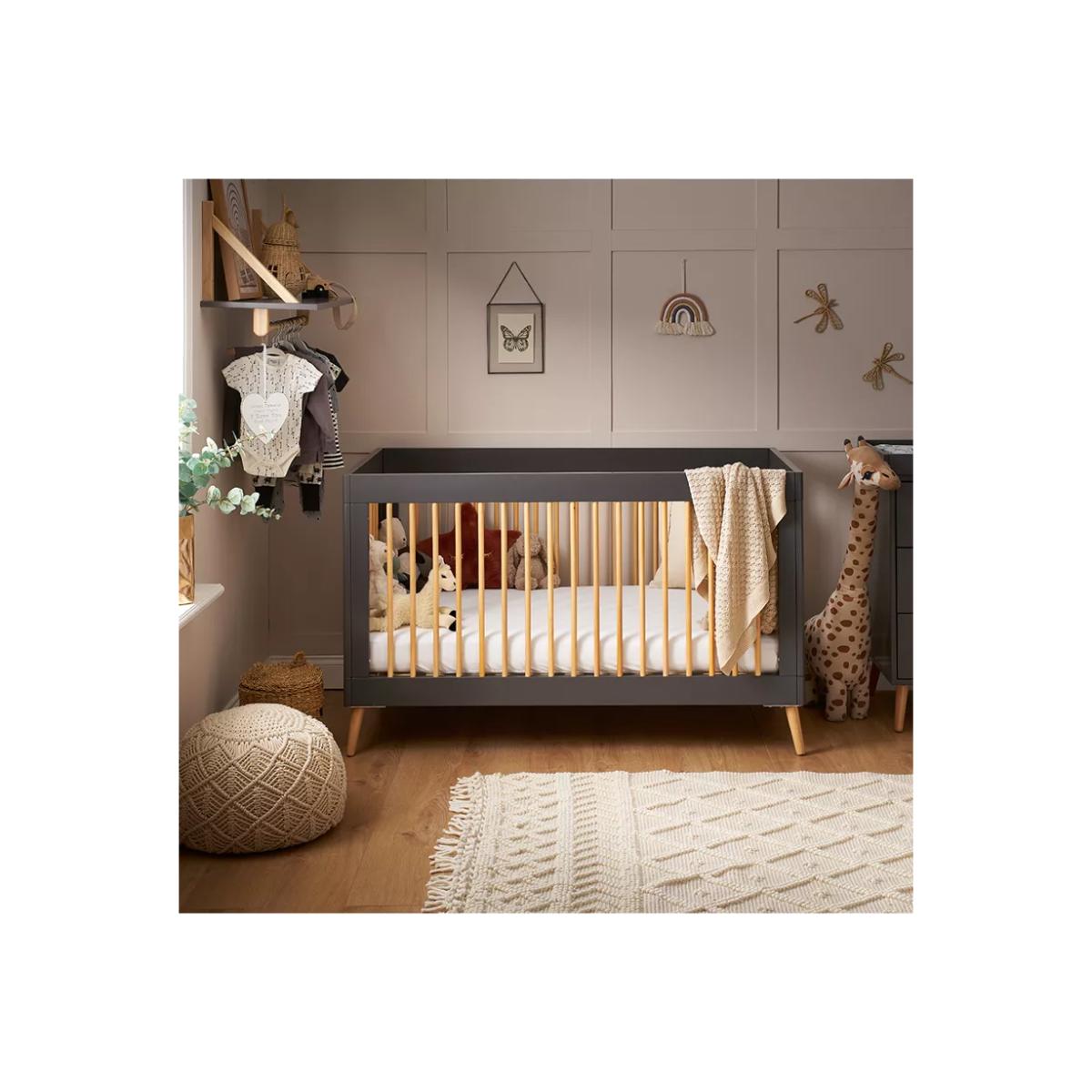 The Maya range from Obaby is inspired by Scandinavian design, featuring a clean-cut finish and two-tone colourway, making it the perfect addition for families looking to create a modern and stylish nursery. Suitable from birth, the Maya cot bed will grow with your little one. The top position of the three height-adjustable mattress base allows you to put down your baby with less pressure and strain applied to your back and as they develop and start to find their feet, you can maintain their safety by lowering the base. When your little one is ready to begin their transition, the included dual-ended safety rail will provide reassurance and familiarity during an often daunting time and once they are used to their "big bed" this can be simply removed to create a stylish toddler bed. The Maya cot bed requires an Obaby 140 x 70cm mattress, available separately. For this item, our supplier can deliver to your doorstep, but the drivers cannot enter your property. If you live in a flat, the delivery driver will be able to bring the boxes to the main entrance of the building, but they will not be able to take them up to the door of your flat. Therefore, we recommend having someone with you who can take in the boxes.