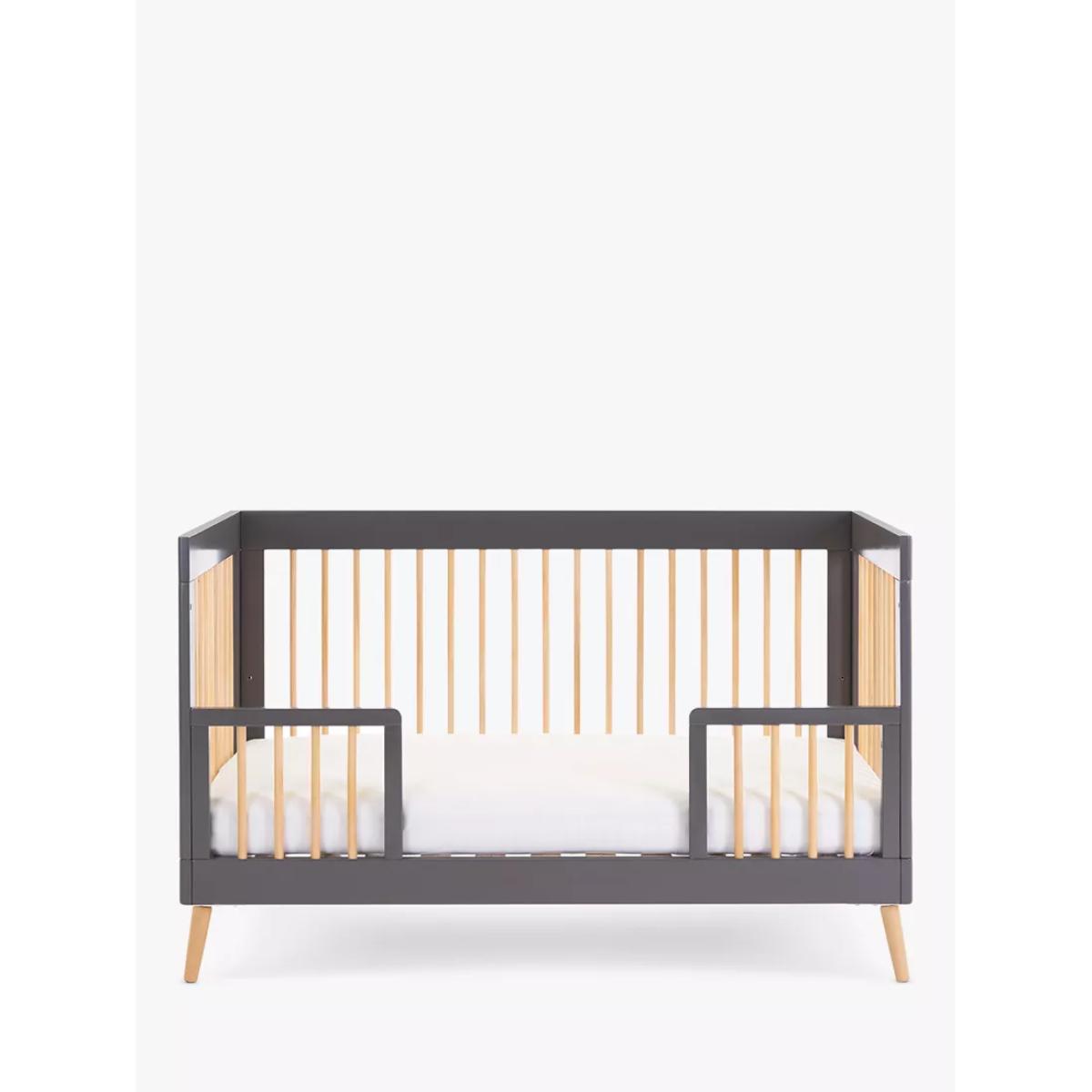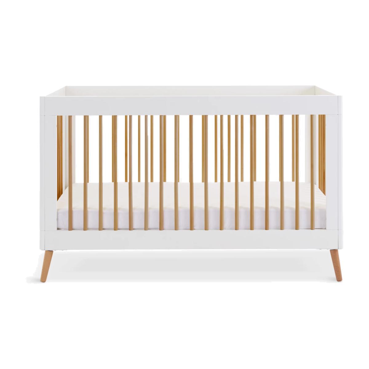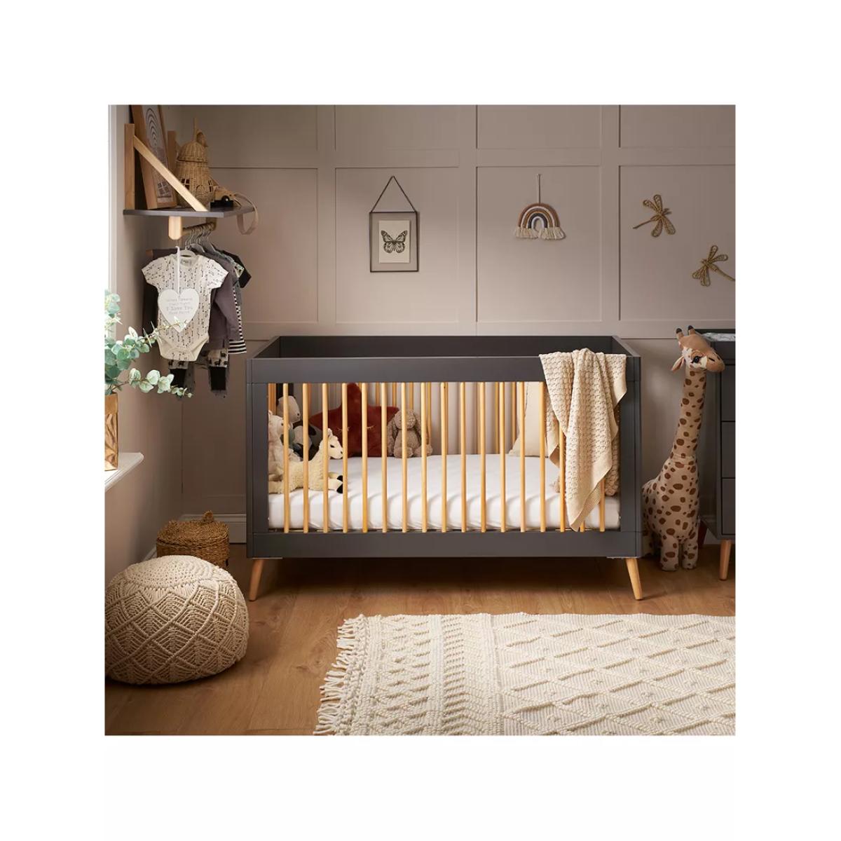 The Maya range from Obaby is inspired by Scandinavian design, featuring a clean-cut finish and two-tone colourway, making it the perfect addition for families looking to create a modern and stylish nursery. Suitable from birth, the Maya cot bed will grow with your little one. The top position of the three height-adjustable mattress base allows you to put down your baby with less pressure and strain applied to your back and as they develop and start to find their feet, you can maintain their safety by lowering the base. When your little one is ready to begin their transition, the included dual-ended safety rail will provide reassurance and familiarity during an often daunting time and once they are used to their "big bed" this can be simply removed to create a stylish toddler bed. The Maya cot bed requires an Obaby 140 x 70cm mattress, available separately. For this item, our supplier can deliver to your doorstep, but the drivers cannot enter your property. If you live in a flat, the delivery driver will be able to bring the boxes to the main entrance of the building, but they will not be able to take them up to the door of your flat. Therefore, we recommend having someone with you who can take in the boxes.