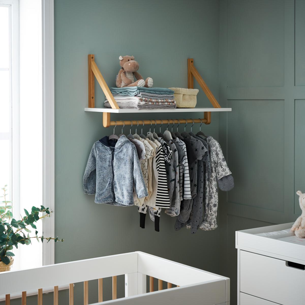 Keep your little one's belongings all in one place with this OBaby shelf. A hanging rail has been fitted under a shelf that provides you with extra surface space.