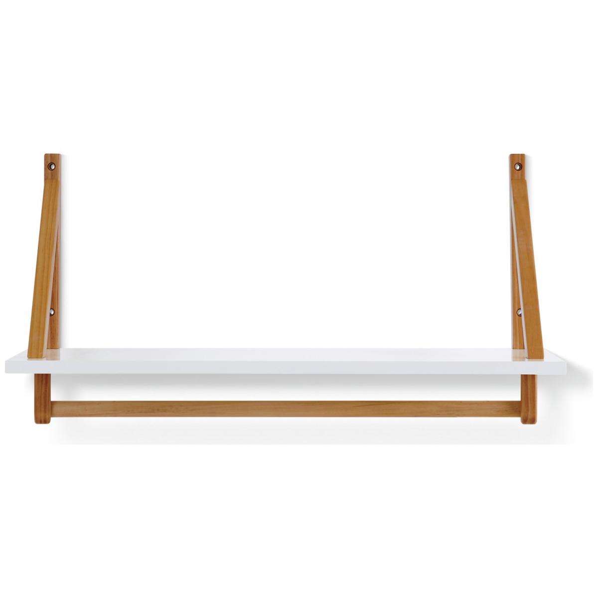 The Maya shelf allows you to store precious belongings close to hand but safely out of reach from little fingers, offering you peace of mind and security. The single deep shelf is the perfect place for books and larger toys while the hanging rail underneath is ideal for storing those frequently used clothing items. Part of the Maya collection. Made from solid wood. Size H40.5, W80, D35cm. Weight 4.5kg. Fixings included. Self-assembly.