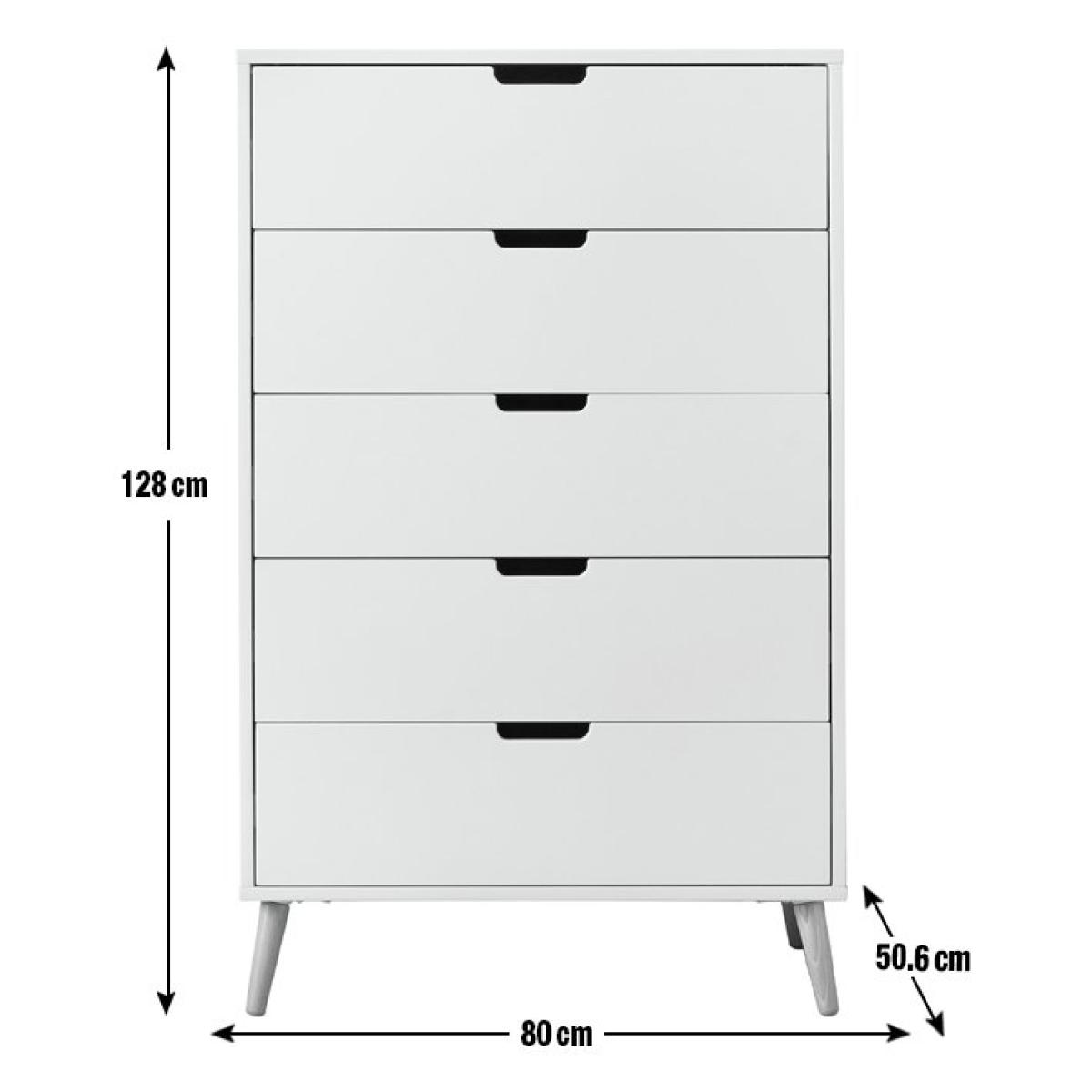 Our Maya Tall Boy is perfect for every parent who are struggling for storage. With the 5 (add drawer capacity) large drawers our Maya Tall Boy looks perfect as a stand alone item in any room of the house or as part of our award winning Maya nursery set. Part of the Maya collection. 5 large drawers. Clean-cut two tone Scandinavian style design. Size H1280, W800, D506cm. Weight 67kg. Self-assembly. If this product is over 60cm high it must be securely attached to the wall to prevent over turning. Home assembly: 2 people recommended. Package Dimensions: Package 1 dimensions: H119, W60.5, D13cm. Package 1 weight: 26kg. Package 2 dimensions: H90.5, W60.5, D12.5,. Package 2 weight: 19kg. Package 3 dimensions: H118.5, W60.5, D12cm. Package 3 weight: 27.5kg. General information: Manufacturer's 2 year guarantee.