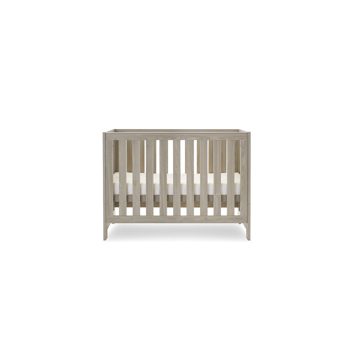 Dimensions Cot Bed H92 x W77 x D144.5cm Changing Unit H92 x W83.5 x D 50cm Wardrobe H 175 x W 80 x D 50 cm Features. OBABY Nika 3 Piece Room Set. Includes Nika cot bed changing unit and double wardrobe Cot bed can transform into a toddler bed. Changing unit has full depth drawers. Double wardrobe with large cupboard space two hanging rails and one drawer Oak wood effect finish. Suitable from birth to approximately four years old Accomodates a 76 x 46cm changing mat Discreet spring pins allow the changing area to be removed when no longer required The Obaby Nika range offers a contemporary design due to its clean lines and textured oak effect finish that will fit perfectly in today’s modern nursery. This 3 piece room set consists of Nika cot bed changing unit and double wardrobe. The Nika cot bed has three mattress base positions the highest allowing you to put down and pick up your newborn without straining your back through unnecessary bending. As your little one starts to develop and become more active the mattress base can then be lowered by a further two positions keeping them safe and secure at all times while the teething rails protect their delicate first teeth. When your little one is standing confidently the Nika can be easily transformed into a stylish toddler bed that still offers the familiarity they are used to and helps them to transition in an often-daunting time. Once transformed the toddler bed can be used until they are approximately four years old. The Nika changing unit is a piece of furniture that can be used for years to come. Three large 32. L capacity full depth drawers offer plenty of space for changing essentials toys and your little one’s precious possessions. All three drawers feature two brushed metal handles and glide on smooth runners allowing you to easily open them with either hand. Discreet spring pins allow the changing area to be attached to the top of the unit without any unsightly screws showing it perfectly accommodates a changing mat up to 76 x 46cm and is set at a comfortable height for parents. When the changing area is no longer needed the frame can be easily removed to create a solid top chest of drawers. Completing the set is the Nika double wardrobe featuring one large cupboard space with two sturdy hanging rails for all of your little one’s special outfits fronted by a pair of soft close doors. Underneath the main cupboard area is a single 33. L capacity full depth drawer providing the perfect storage solution for those items that cannot be hung up. Stylish brushed metal handles are used throughout the piece making sure it is simple to use. .
