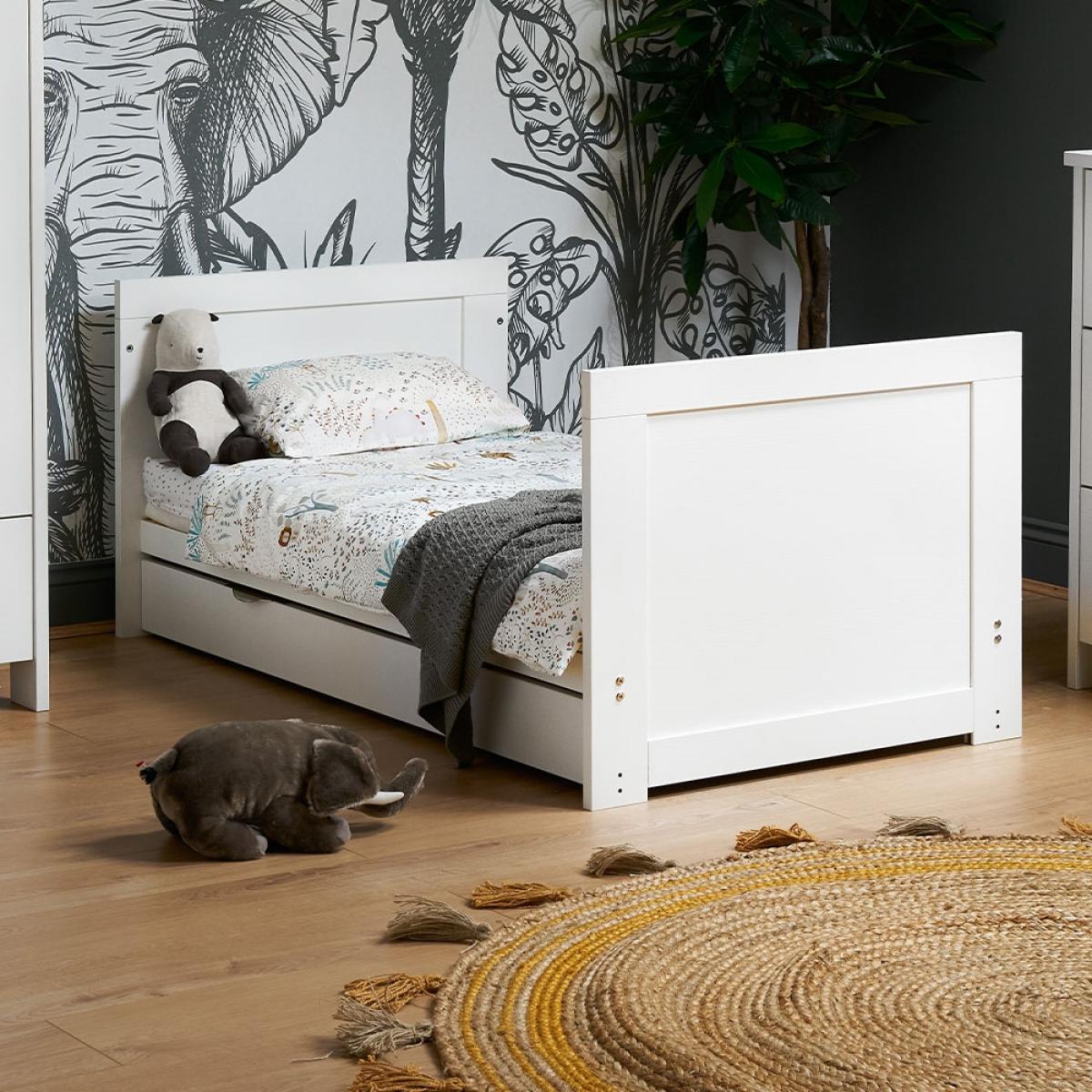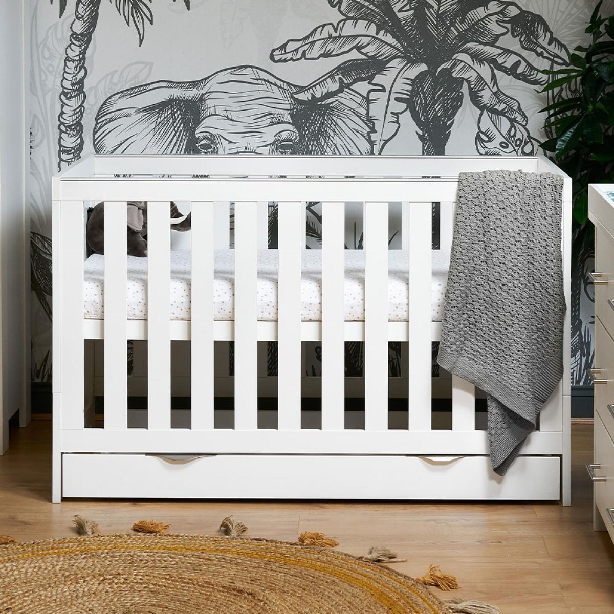 Available in a choice of finishes, the Obaby Nika Cot Bed & Underdrawer has extra features you might not have thought of! Designed to be used from birth up to 4 years of age, the adjustable frame adapts to suit growing babies and tots. Raise or lower the mattress height to suit their development. We'd recommending starting out with the mattress at the highest level and lowering once they've started supporting themselves. Protecting precious baby teeth - the teething rails ensure tots and the cot bed are kept safe whenever they feel the urge to chew! When the cot has been outgrown, transform into a toddler bed and continue using the gorgeous wooden frame for longer. The under bed storage drawer can be used with the cot and junior bed - that extra bit of storage will be a life-saver! Practical, stylish and safe, it's a great choice for your new arrival.