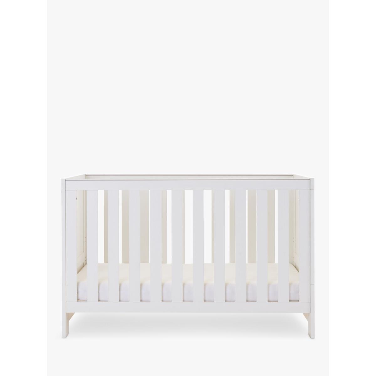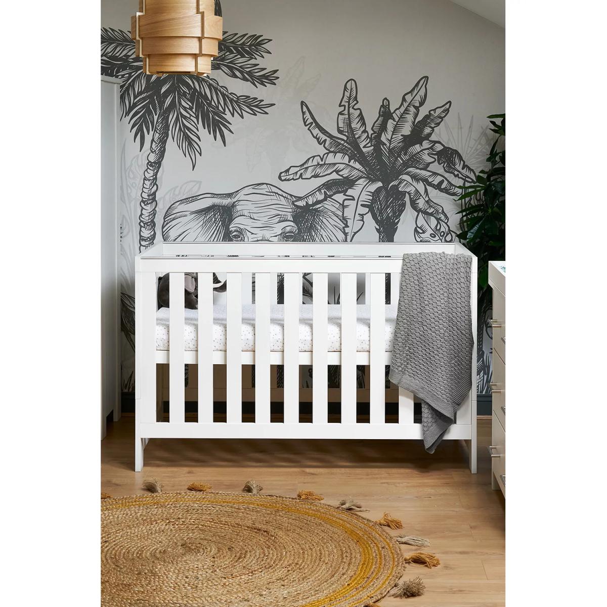 The Obaby Nika range offers a contemporary design, due to its clean lines and textured oak effect finish, that will fit perfectly in today’s modern nursery. The Nika cot bed has three mattress base positions, the highest allowing you to put down and pick up your newborn without straining your back through unnecessary bending. As your little one starts to develop and become more active, the mattress base can then be lowered by a further two positions keeping them safe and secure at all times while the teething rails protect their delicate first teeth. When your little one is standing confidently, the Nika can be easily transformed into a stylish toddler bed that still offers the familiarity they are used to and helps them to transition in an often-daunting time. Once transformed the toddler bed can be used until they are approximately four years old. This cot bed requires an Obaby 140 x 70cm mattress, sold seperately. For this item, our supplier can deliver to your doorstep, but the drivers cannot enter your property. If you live in a flat, the delivery driver will be able to bring the boxes to the main entrance of the building, but they will not be able to take them up to the door of your flat. Therefore, we recommend having someone with you who can take in the boxes.