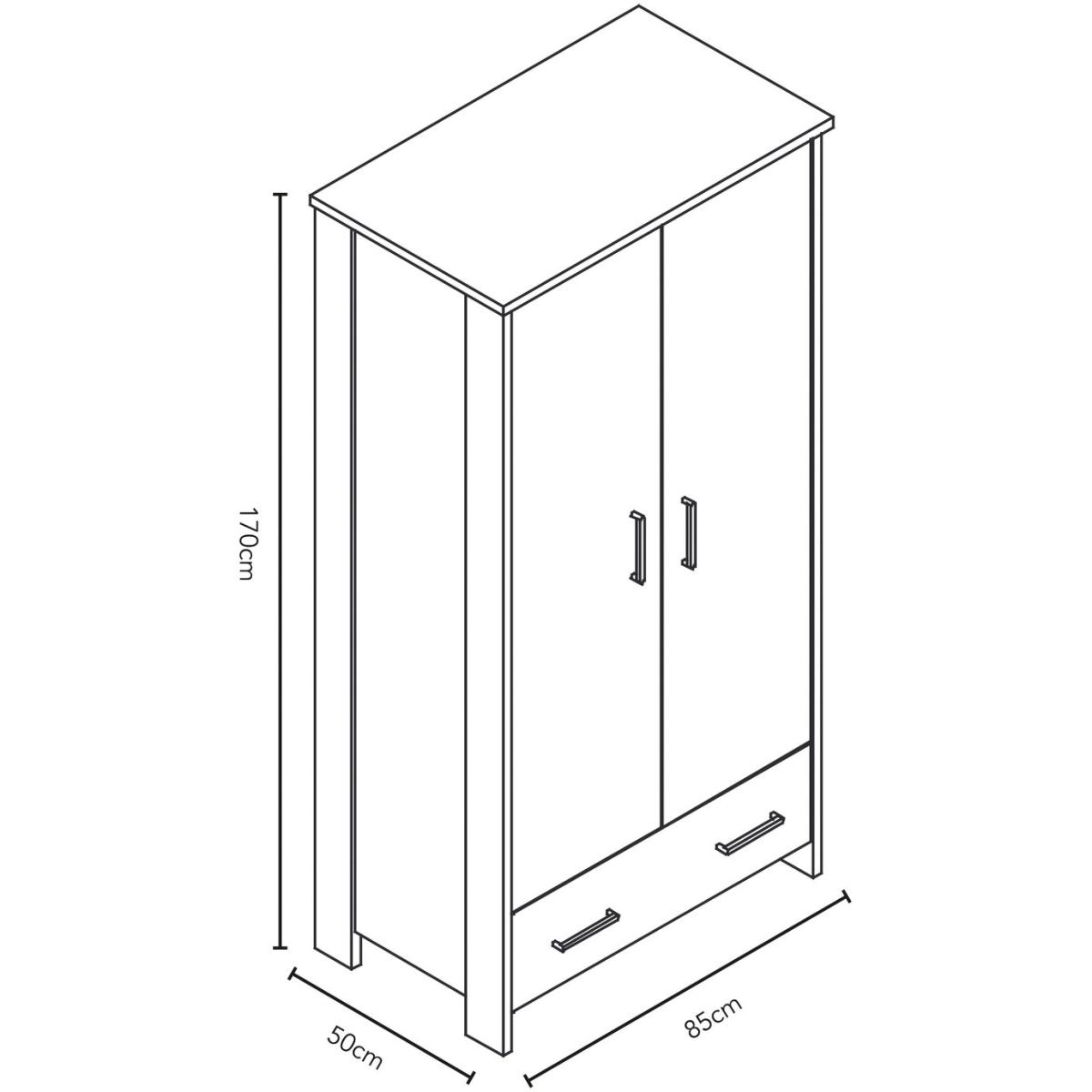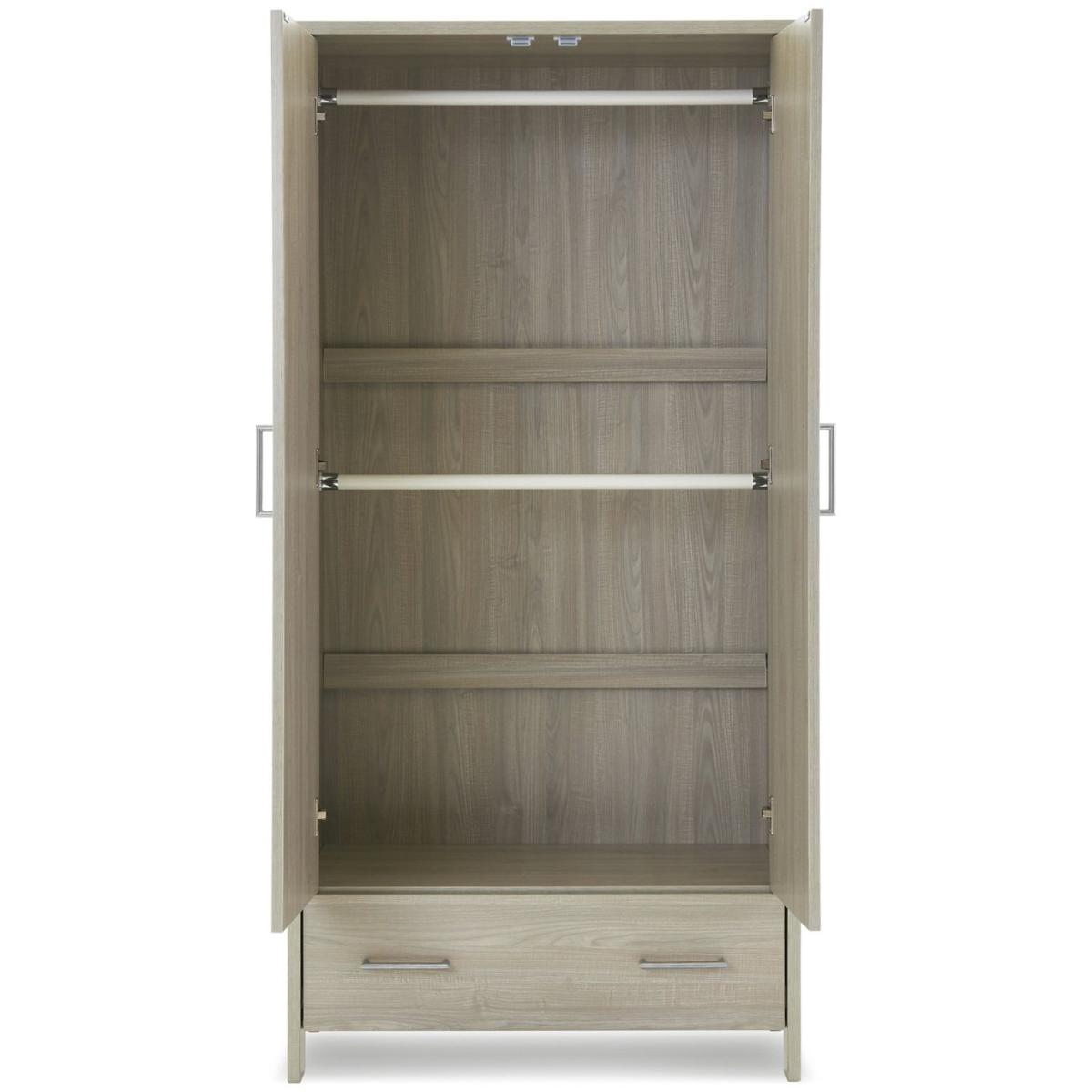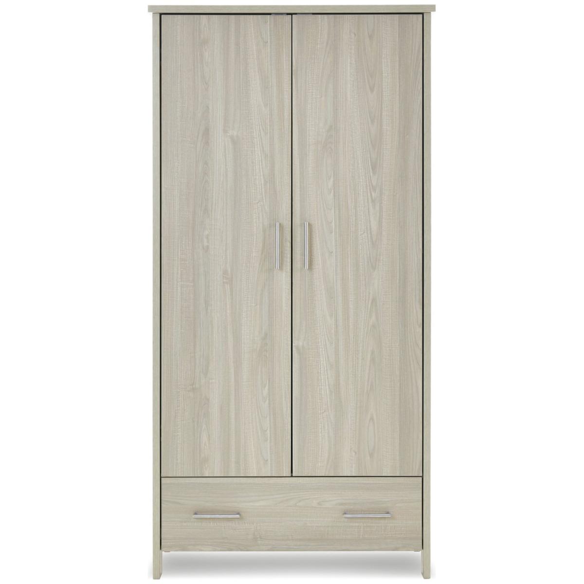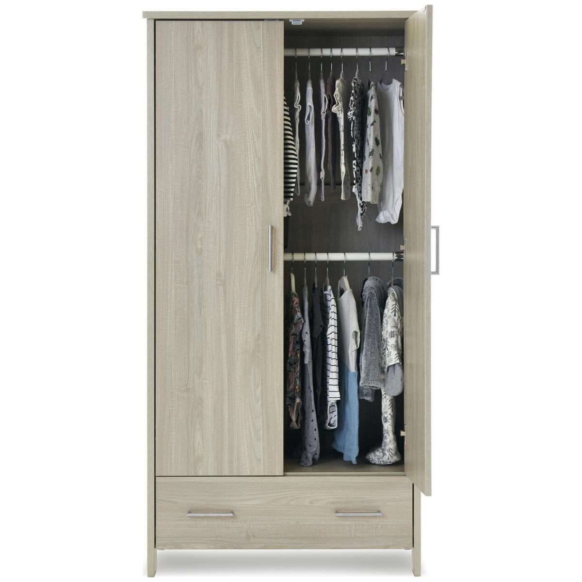 The Obaby Nika double wardrobe features one large cupboard space, with two sturdy hanging rails for all of your little one's special outfits, fronted by a pair of soft close doors. Underneath the main cupboard area is a single full depth drawer providing the perfect storage solution for those items that cannot be hung up. Stylish brushed metal handles are used throughout the piece making sure it is simple to use. Coordinates perfectly with the rest of the Nika range. Part of the Obaby Nika collection. 2 doors. 2 hanging rails. 1 drawer. Package Dimensions: Package 1 dimensions: H180.5, W61, D9cm. Package 1 weight: 26kg. Package 2 dimensions: H97.5, W66, D11cm. Package 2 weight: 26.1kg. Package 3 dimensions: H149.5, W51, D9.5,. Package 3 weight: 22.7kg. General information: Size H182, W103, D52cm. Weight 58.65kg. Self-assembly. If this product is over 60cm height it must be securely attached to the wall to prevent overturning. Home assembly: 2 people recommended. Manufacturer's 2 year guarantee.