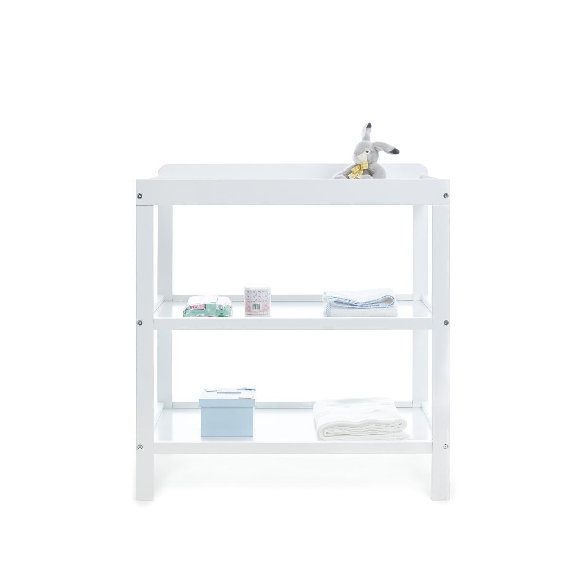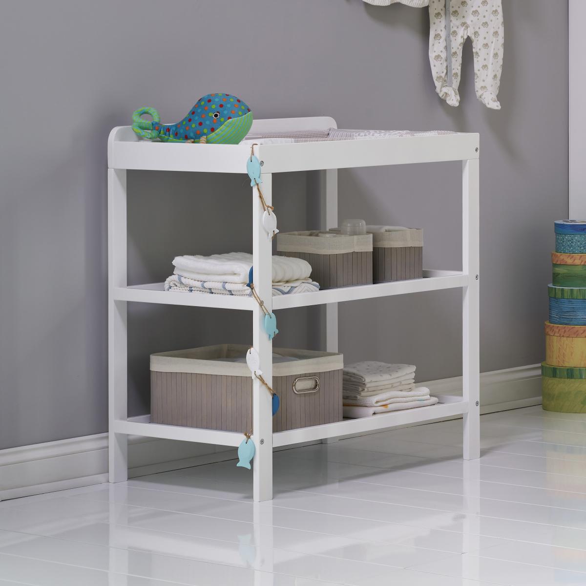 Prepare for those explosive nappy moments or just a general change getting ready for nap time with this open changing unit. The space on top allows a good height level and easy positioning for you to complete your change and the area is designed to fit a changing mat up to a size of 76 x 45cm while the two large spacious shelves can stack nappies, spare change of clothes, creams and ointments, toys, towels and other essentials. This piece is open and available for a quick grab without having to open and close drawers and doors and available in a white, warm grey or taupe grey colourway.