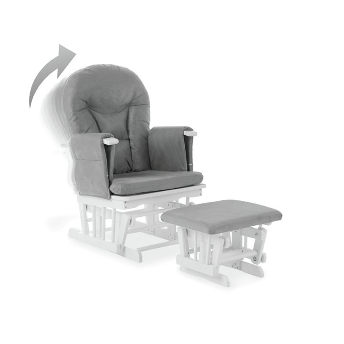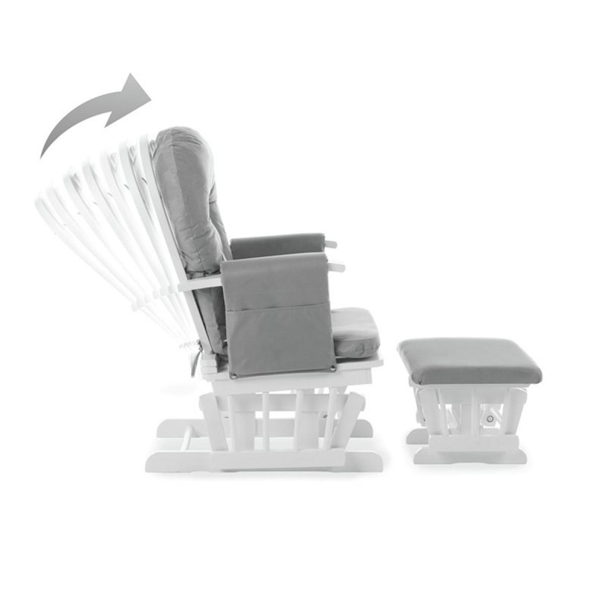 The Obaby reclining glider chair is the perfect place to rest and relax with your baby whilst enjoying the utmost of comfort. The gentle gliding motion of the chair, perfectly mimicked by the stool, soothes your little one to sleep whilst the padded microfibre cushions and adjustable back rest help you unwind in luxury. Includes gliding chair, matching gliding stool and microfibre cushions. Simple back rest reclining to ensure the perfect position. Extra deep cushions provide extra comfort. Arm cushions each feature a handy storage pocket. General information: Weight 15.1kg. Size H99.6, W65.3, D71.9cm. Suitable from birth. Package Dimensions: Package 1 dimensions: H77, W57, D46cm. Package 1 weight: 25kg. General information: Manufacturer's 2 year guarantee.