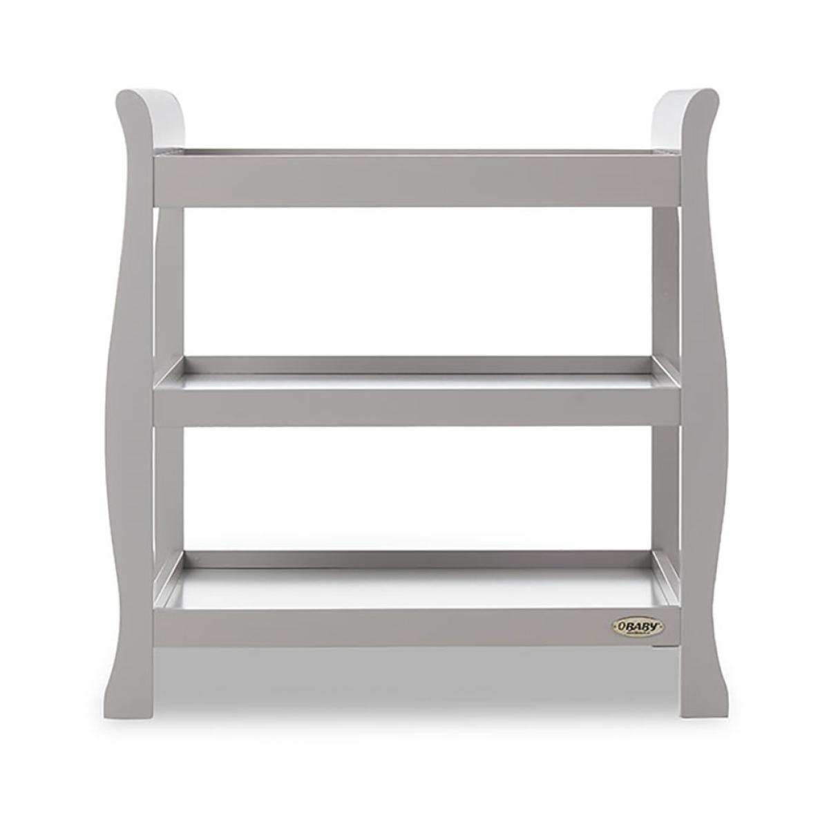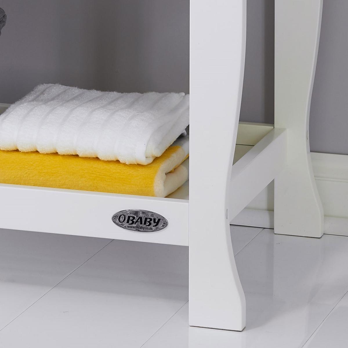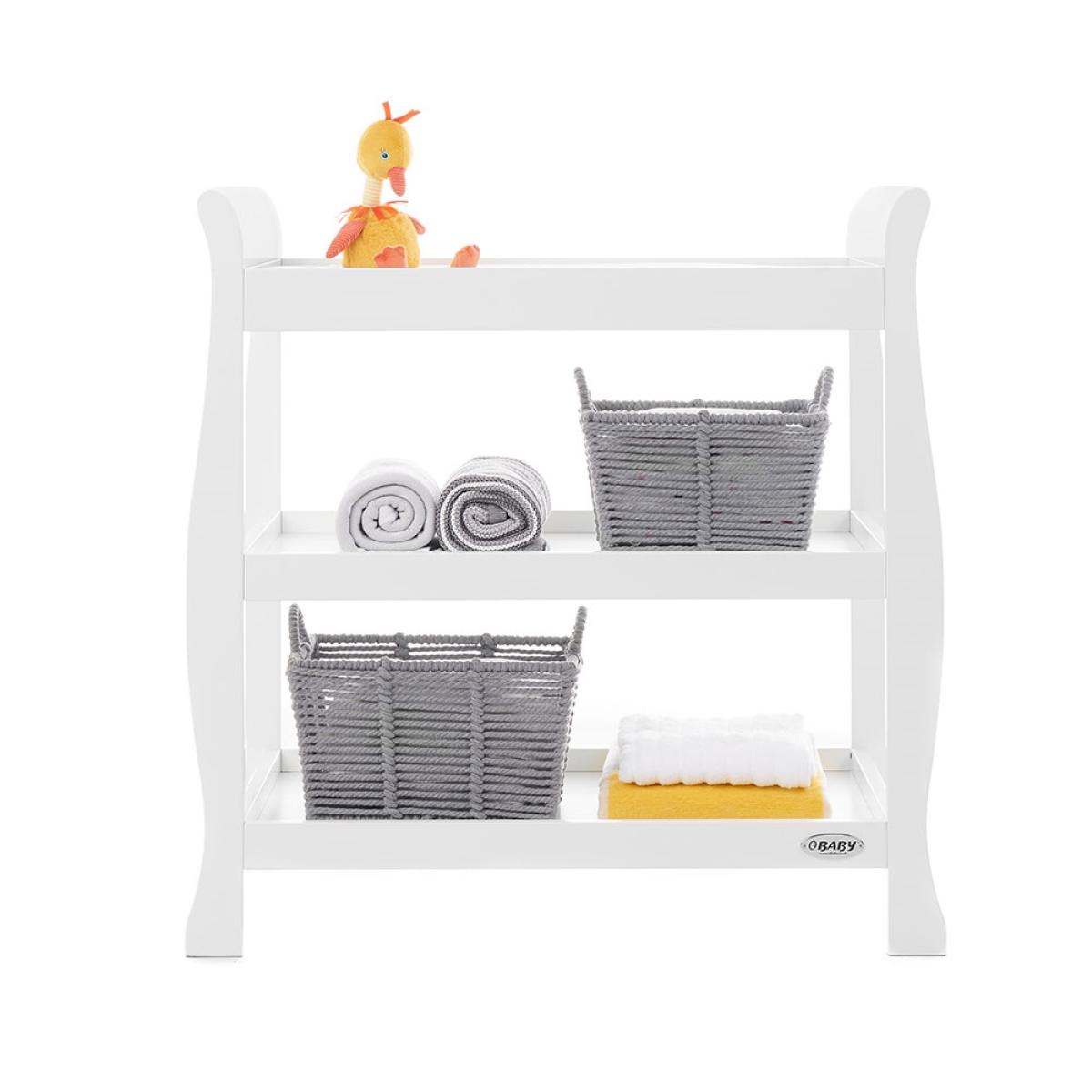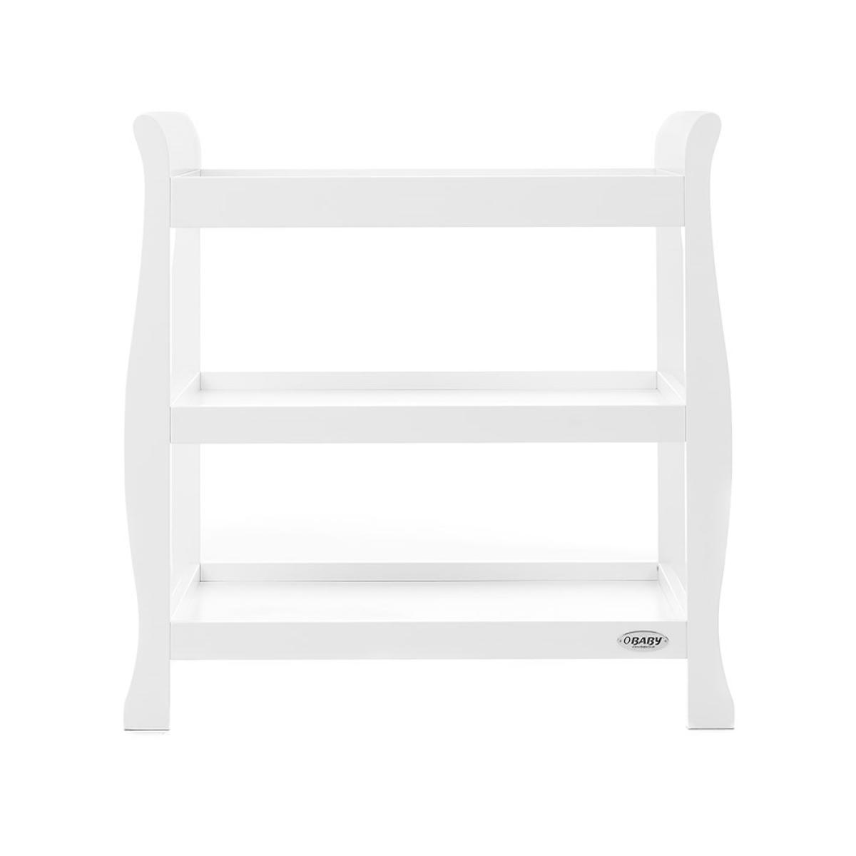 Elegantly styled and offering plenty of space, the Obaby Stamford Open Changing Unit is a must have in any nursery! Featuring 2 large shelves; keep blankets, bottles and other essentials close to hand. The open design makes everything easily accessible, so night time changes are made easier! Crafted from solid wood and available in a choice of colours, the recessed section on the top of the changing unit perfectly accommodates a changing mat and ensures your little bundle is safe and sound during changes. Practical without compromising on style, the changing unit features a beautiful scroll design, coordinating with the other pieces from the Stamford range. From cot beds to wardrobes, why not furnish your nursery with the whole set?.