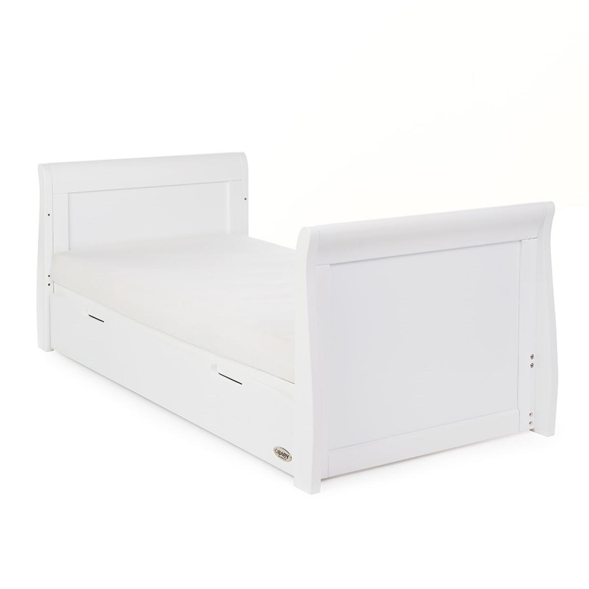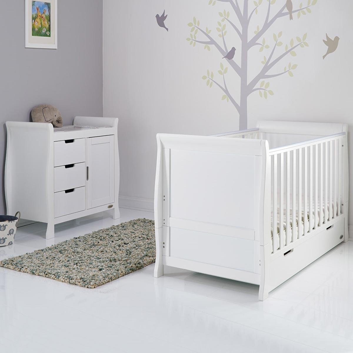 White goes with absolutely any colour so you really can't go wrong with this choice for your little bundle's nursery. The beautifully crafted Stamford range from Obaby offers you a luxuriously stylish nursery. The Sleigh Cot Bed is constructed from solid wood and can be converted seamlessly from a baby’s cot of the highest quality to a fully functioning junior bed. The cot bed also includes a matching under drawer, offering parents a convenient storage solution for baby’s essentials. The matching Changing Unit provides three generous drawers and a full length cupboard with an adjustable shelf. Recessed handles have been cleverly utilised on the Changing Unit to create a stylish and uncluttered look and ensure the units are snag free and simple to use. They also prevent little noggins from being knocked as they run too close! The Obaby Stamford 2 Piece Nursery Furniture Set strikes the perfect balance between modern and traditional aesthetics, represents great value and is available in a range of colour options - meaning that there is a Stamford range for any style of nursery.