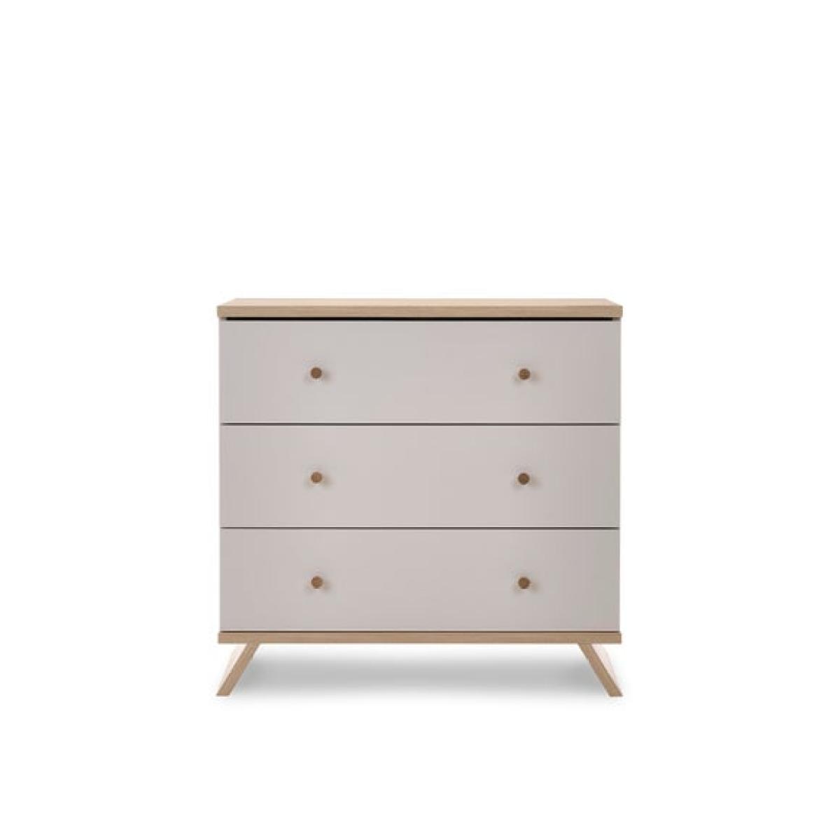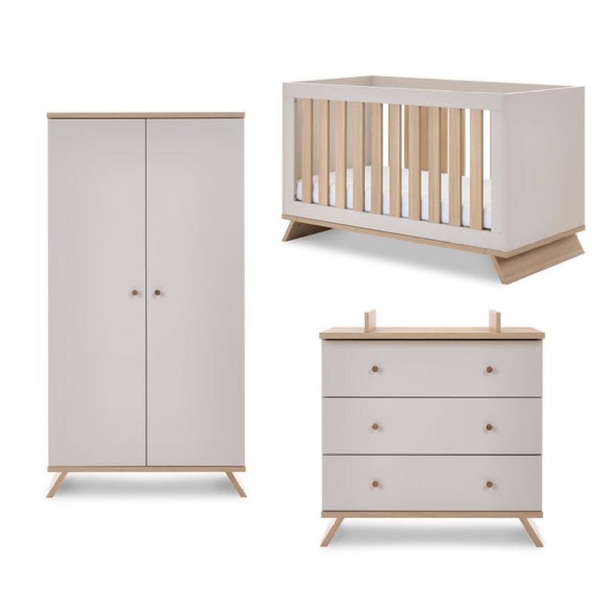* Sleek bedroom set * 1 x Double Wardrobe, 1 x Changing Unit and 1 x Cot Bed * Convertible design The Thea 3 piece furniture set provides a complete solution for your nursery, including the Thea Cot Bed, Changing Unit, and matching wardrobe. Designed for longevity, the cot bed converts into a toddler bed, while the changing unit transforms into a chic chest of drawers. With its contemporary two-tone finish and durable craftsmanship, this set combines elegance with everyday convenience.