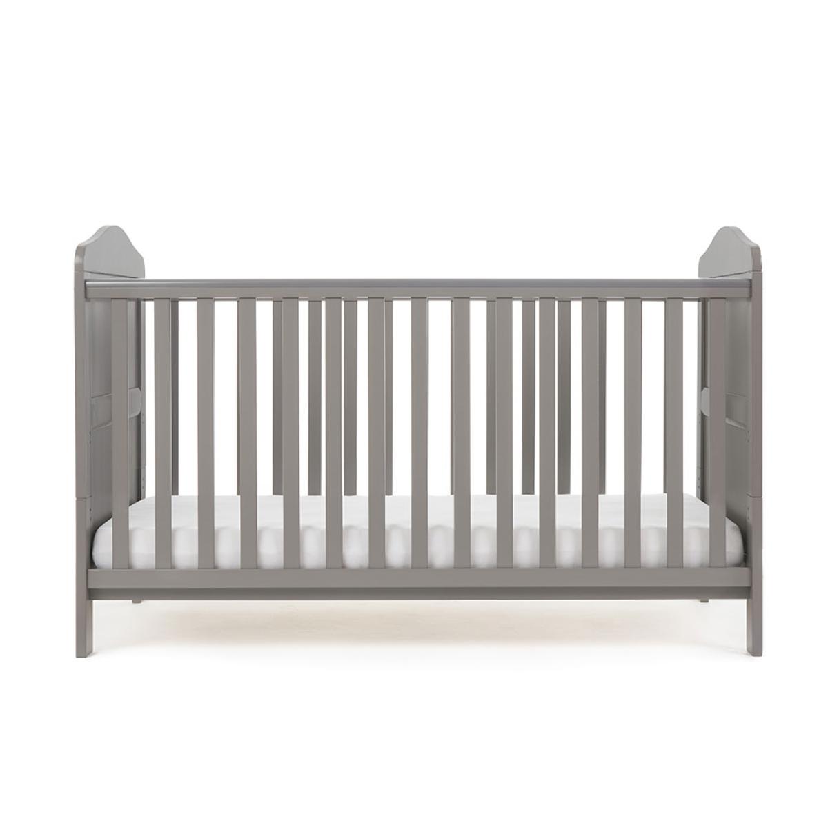 Including a convertible Cot Bed and a Changing Unit, the gorgeous Obaby Whitby 2 Piece Nursery Set would be the perfect choice for your little man or miss! Suitable from birth to 4 years, adapt the solid wood bed frame to suit the needs of your child as they continue to grow. With 3 height settings, simply adjust the bed base once your baby begins to start sitting and standing up in their cot. When they are ready, the grooved head and footboard can be separated to create a toddler bed, making the transition to a 'big kids' bed easier on your tot. Including an open changing table, the spacious top has been designed to fit a changing mat and set at a height for added convenience and ease of use. Featuring storage shelves, nursery essentials can be kept close-by, making night time changes a little simpler. Finished in taupe, pair with coordinating bedding and accessories to create a soothing space for your little one. Available in a choice of colours, there's an Obaby Whitby Set to suit you and your baby!.