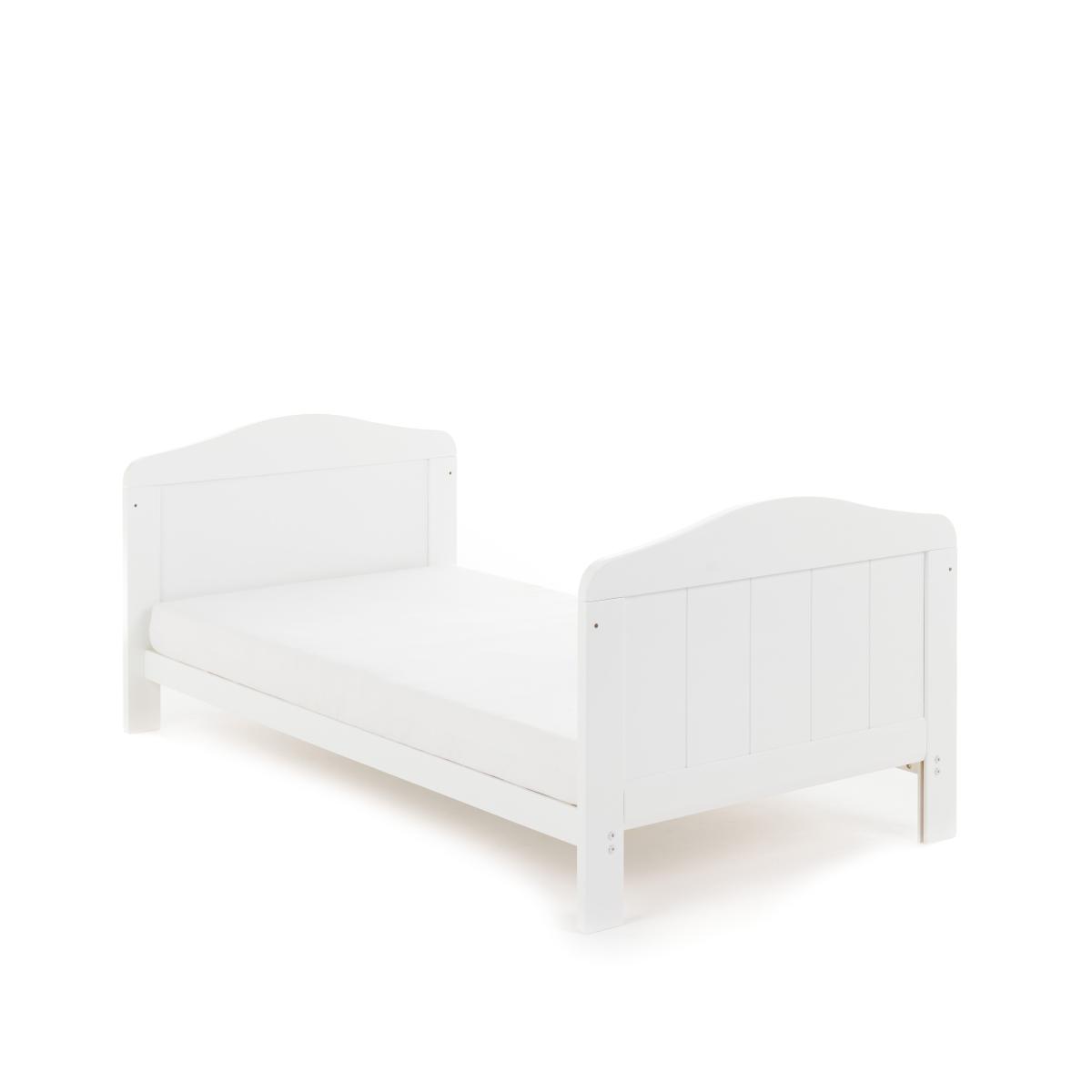 * Adjustable 3 position base height* Removable sides for cot to toddler bed transformation* Teething rails that ensure delicate teeth protection* Suitable from birth to approximately 4 years old* Requires mattress measuring 140cm x 70cm* Mattress not included The Whitby cot bed is the perfect investment for your little one. It caters from birth right through until they are round 4 years old as the cot can be transformed into a toddler bed. With a white colourway, this bed is perfect for matching any nursery theme you have chosen.