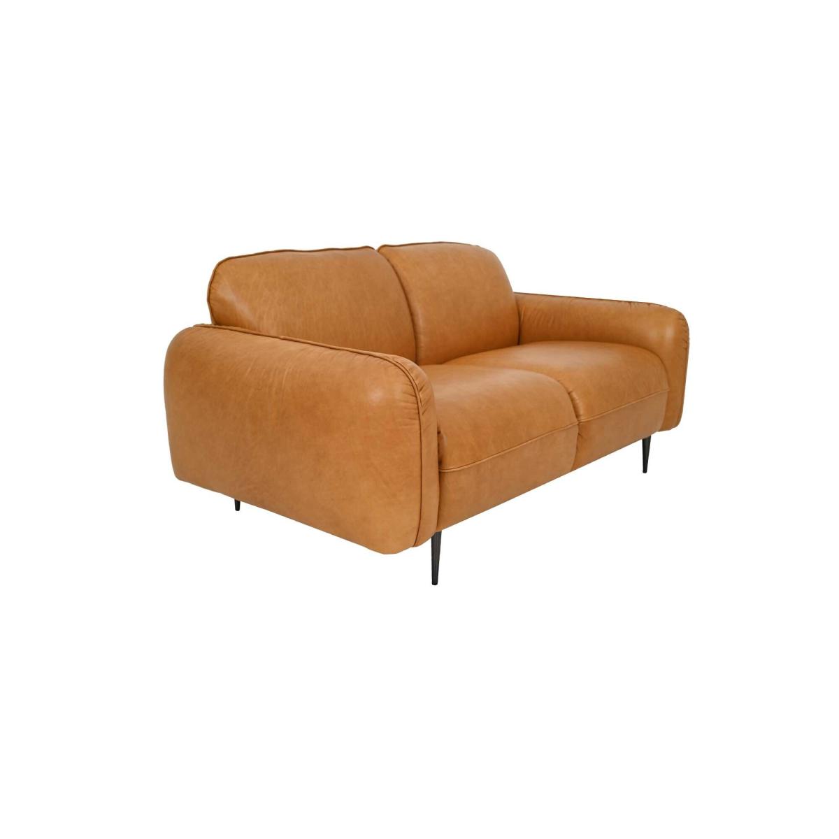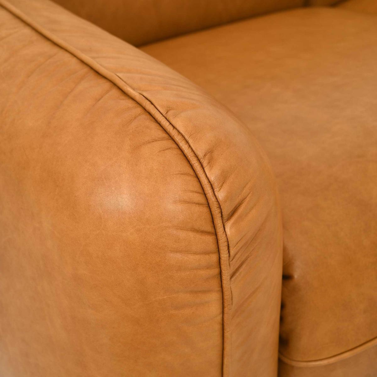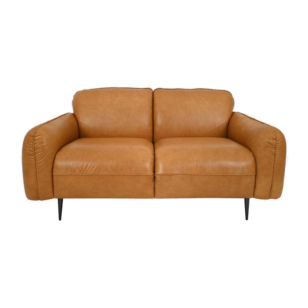 I love this leather loveseat for its timeless, versatile appeal. Its rich, warm brown tone pairs particularly well with both classic and modern interiors, making it a great anchor piece. It works beautifully in cosy living rooms or open-plan spaces where it can serve as a focal point or complement other neutral tones. Practical styling tips include layering with textured cushions in contrasting or coordinating colours to add depth, and pairing it with a neutral rug and minimalist accessories for a clean, sophisticated look. Its sleek, slightly tapered legs lend a contemporary edge, making it adaptable to various design schemes from Scandi to industrial chic.