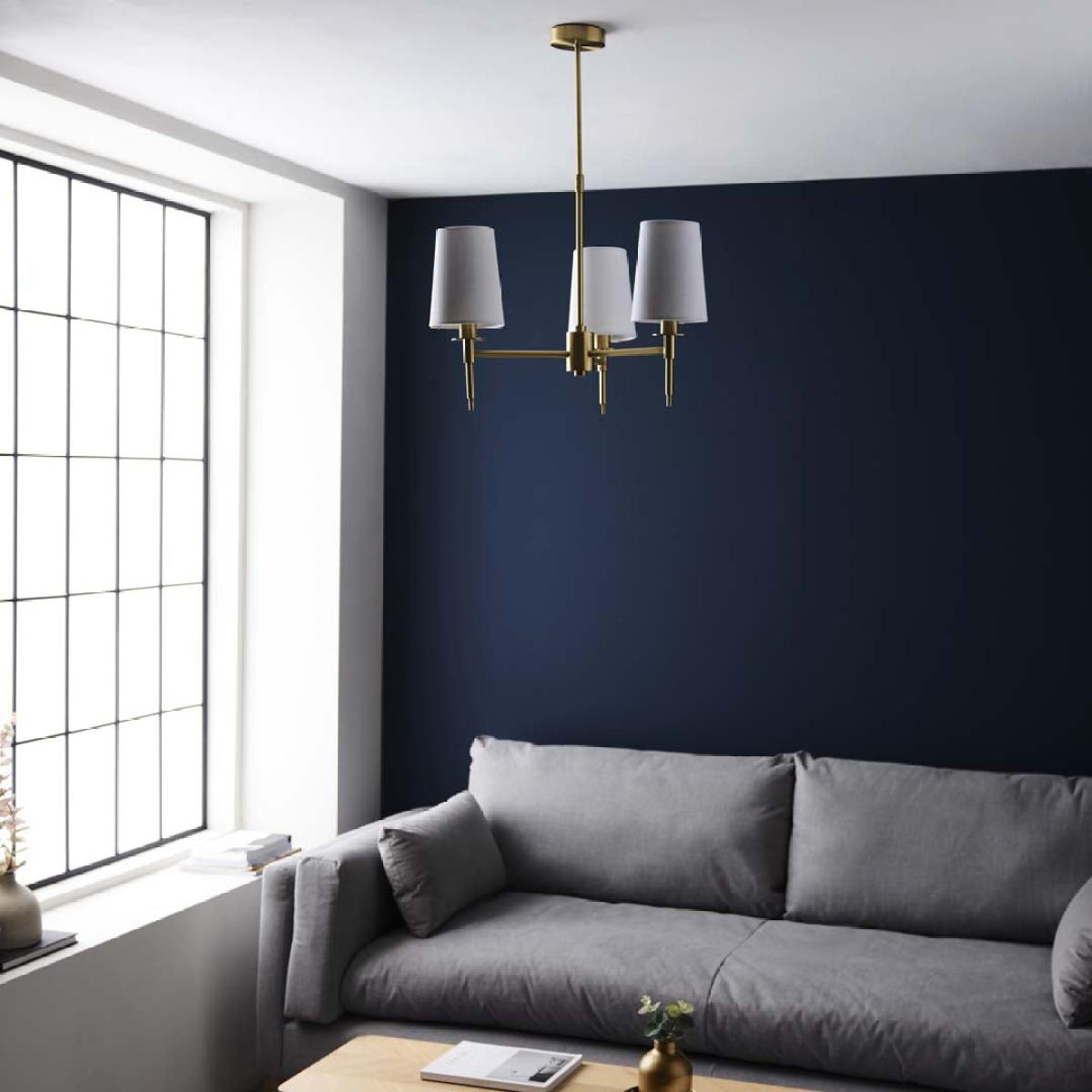 I love this chandelier’s clean and modern take on classic materials, making it a versatile choice for various interiors. The satin brass finish adds warmth and sophistication, working particularly well in contemporary or mid-century styled spaces. It’s a great piece to hang above dining tables or in living rooms, where the multiple shades provide a diffused, inviting light. For practical styling tips, consider pairing it with neutral or muted colour palettes to let the brass detail stand out or with contrasting textures like velvet or wood to create visual interest. Keep the height proportionate to the space, ensuring it’s not too low in rooms with high ceilings for a balanced look.