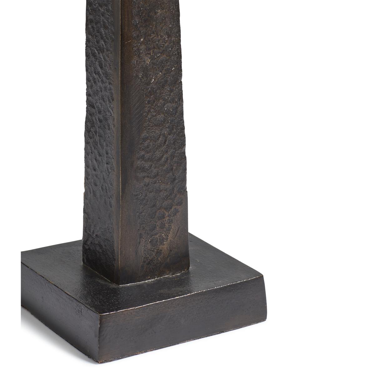 Our Obelisque Table Lamp has a tapered metal base achieved through aluminium casting. The metal is then hand finished for a textural appearance, painted black and sprayed with brown tones, then waxed for additional definition and shine. The artisanal process will result in each piece having individual characteristics.