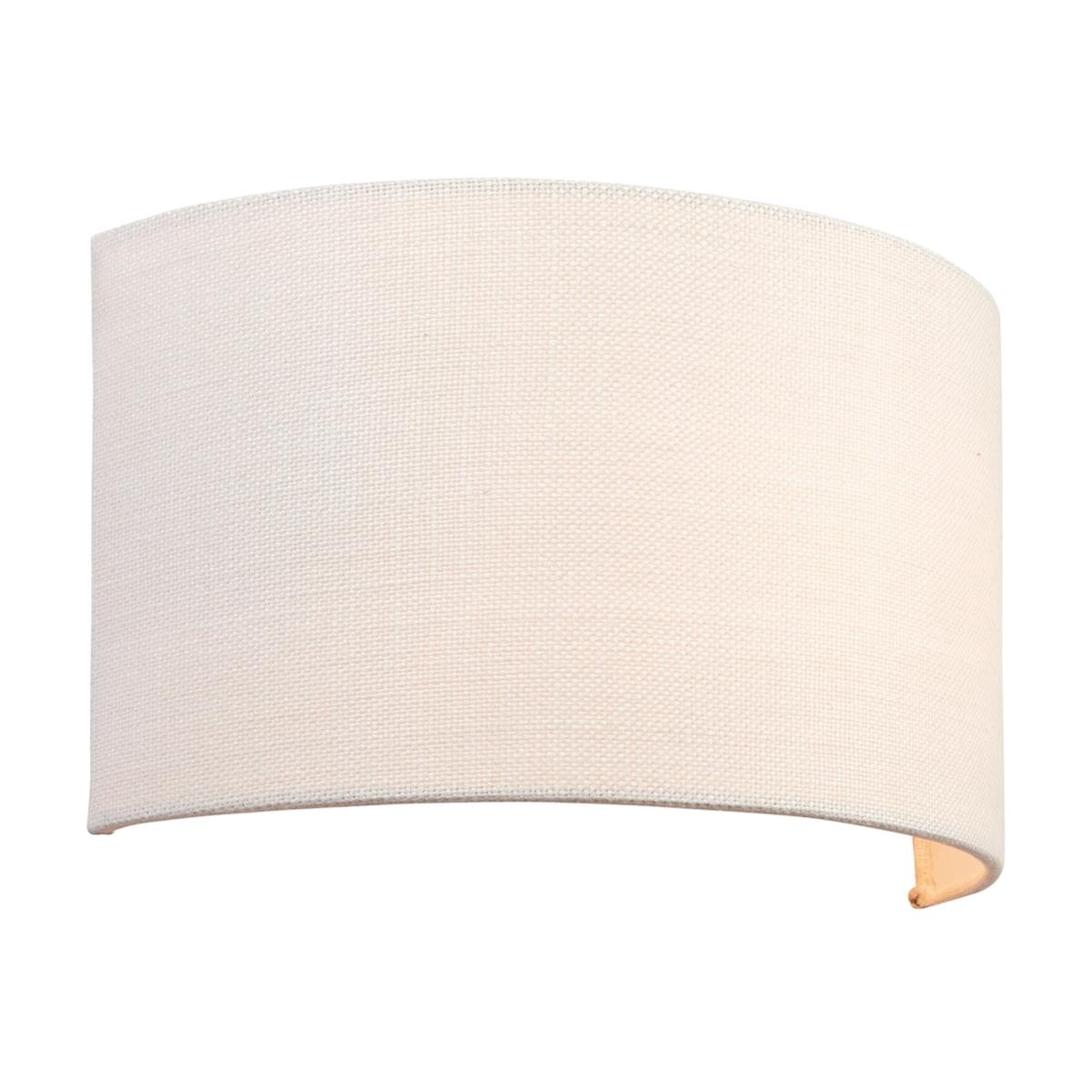 A simple wall light comprising of a semi circular shade in vintage white linen. Dimmable and compatible with LED lamps