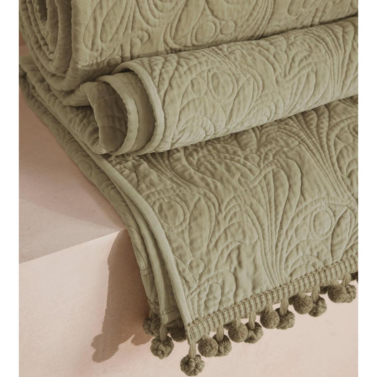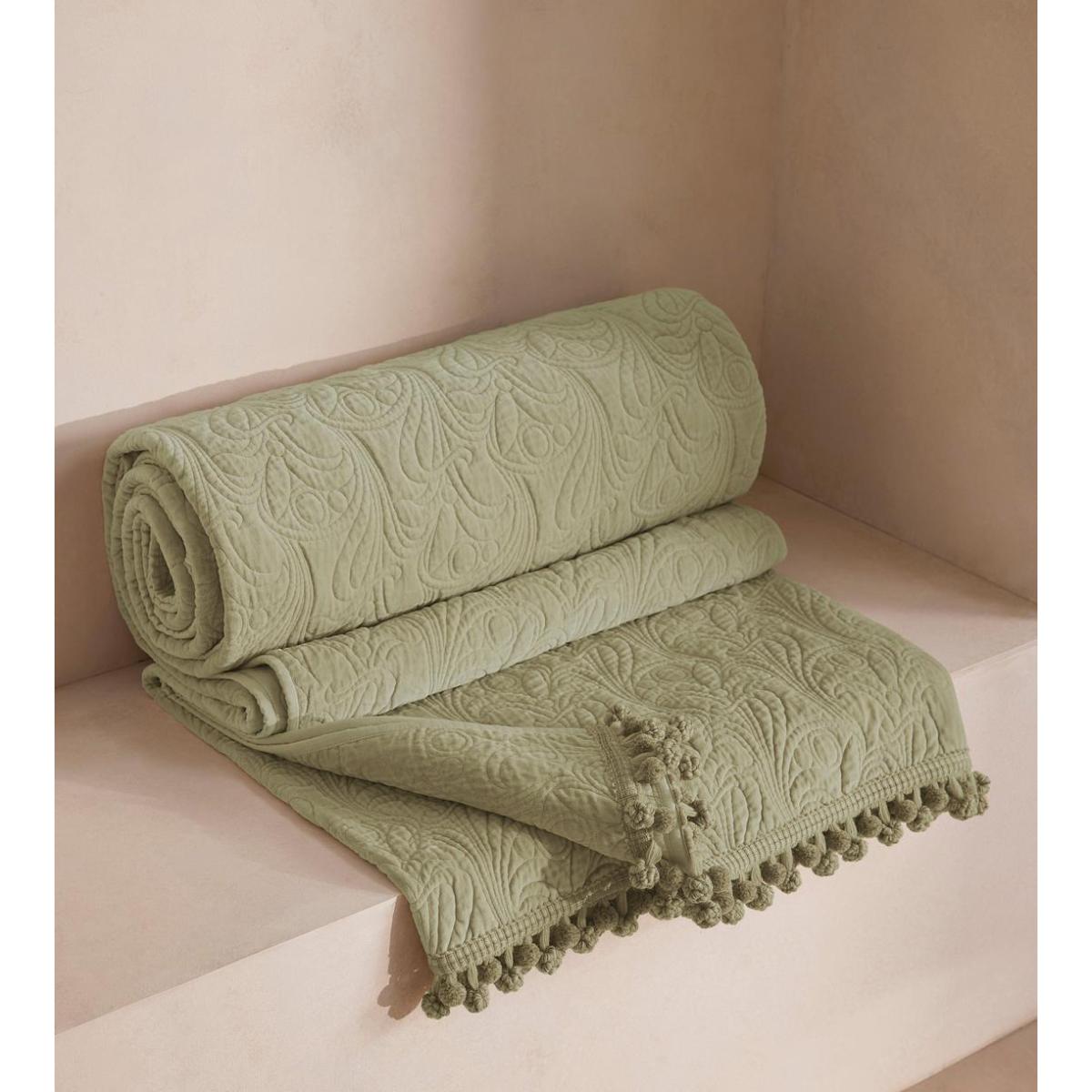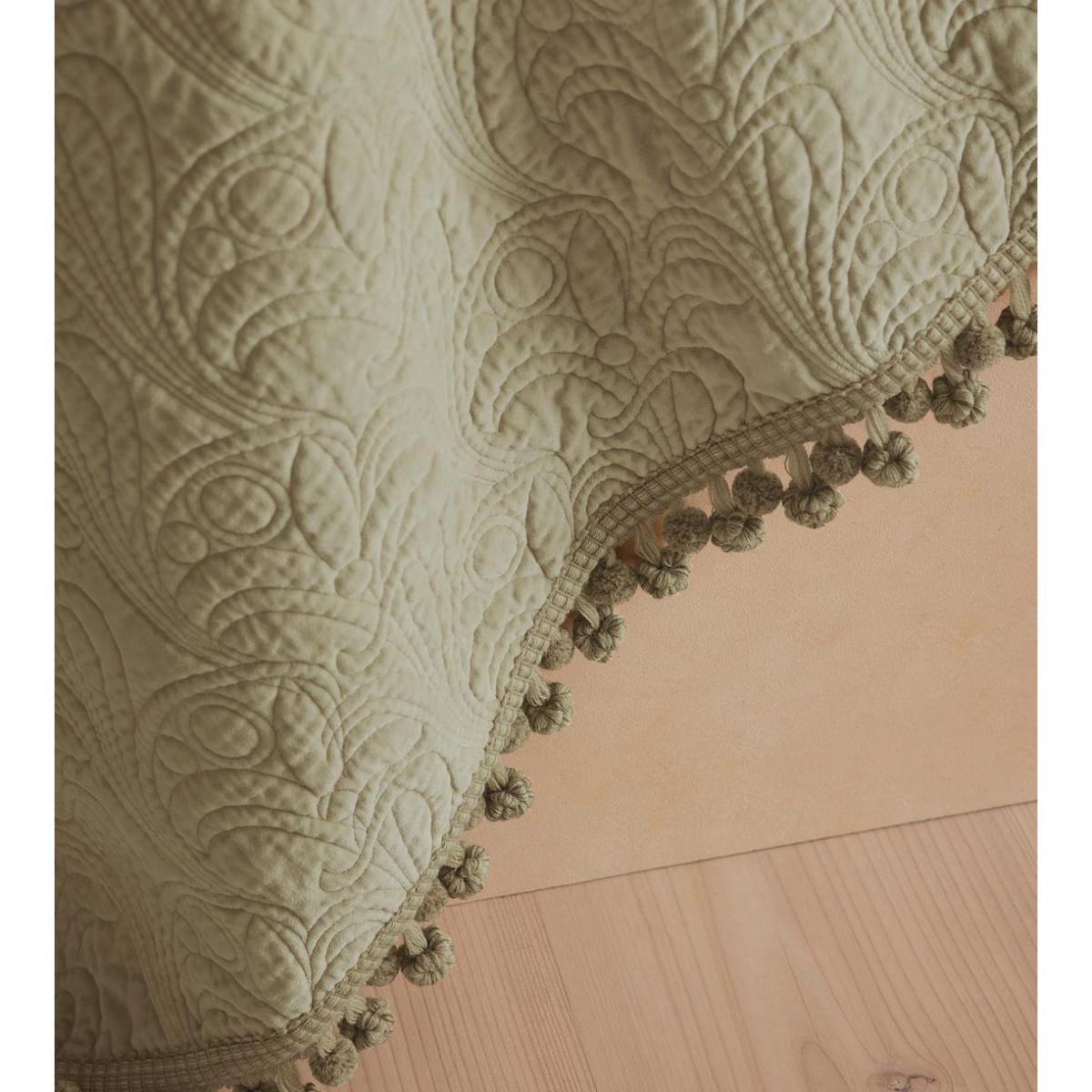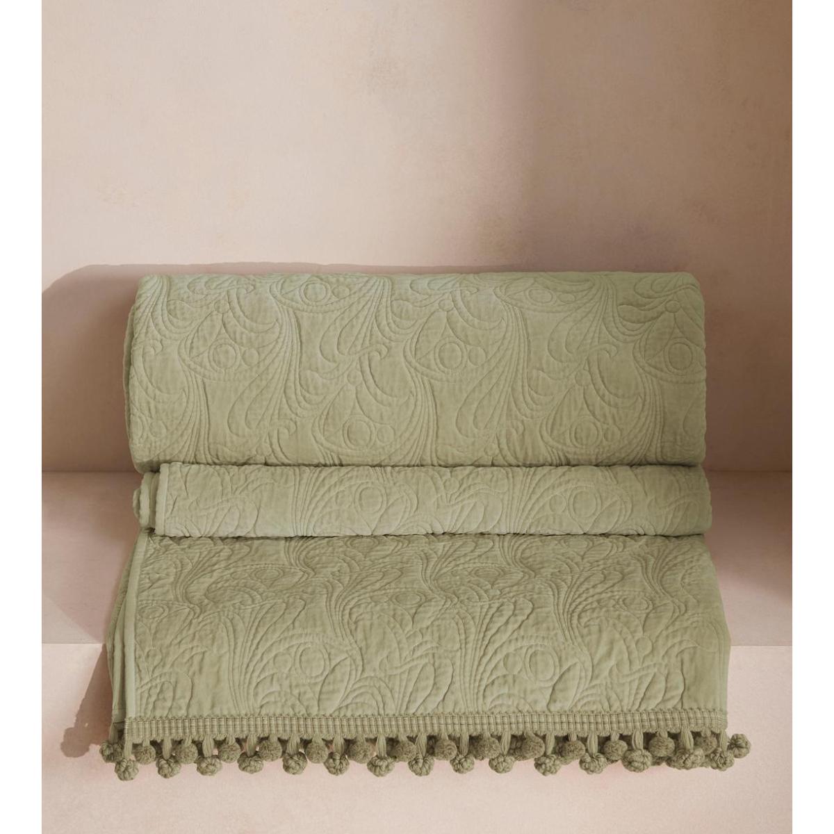 I love the Obie Bedspread Sage for its understated elegance and textured detailing, which adds subtle visual interest without overwhelming a space. It works particularly well in relaxed, coastal, or contemporary interiors, where its soft sage hue can complement neutral palettes or be paired with deeper greens and earthy tones for a more layered look. Practical styling tips include draping it casually over the end of a bed, layering it over a quilt for added warmth, or folding it neatly on a sofa to introduce a touch of colour and comfort. The textured design and pom-pom edging give it a cosy, tactile feel that can enhance both formal and casual settings, making it a versatile piece for adding warmth and personality to a room.